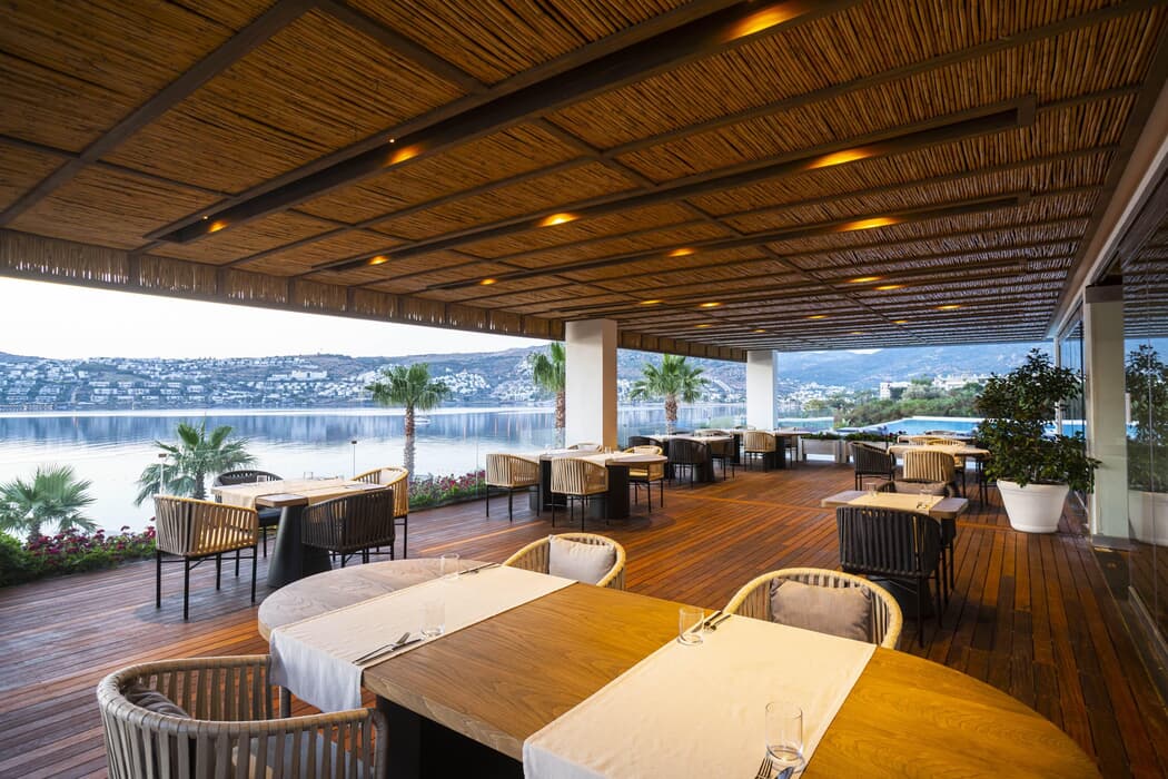 | Konaklama Açıklaması: | Ana Restoran 07:30 - 12:00 Kahvaltı A'la Carte Lunch 09:00 - 18:00 Escape Beach & Lounge A' la Carte Restoran ( Ücretli ve Rezervasyonlu ) 19:00 - 23:00 Anda Restaurant (Ege ve Akdeniz Mutfağı) 17:00 - 23:30 İtsumi Japanese Cuisine (Türkiye'nin ilk JFS (Japanese Food Supporters) belgeli restoranı) 18:00 - 02:00 Beeves Grill & Brasserie Barlar ( Ücretli ) 24 Saat Lobby Bar Lounge 09:30 - 20:00 Infinity Pool Bar 08:00 - 00:00 Cantina Artisan Cafe & Patisserie 09:30 - 00:00 Escape Beach Bar Tesiste sabah kahvaltısı dışında alınan tüm yiyecek ve içecekler ücretlidir. |