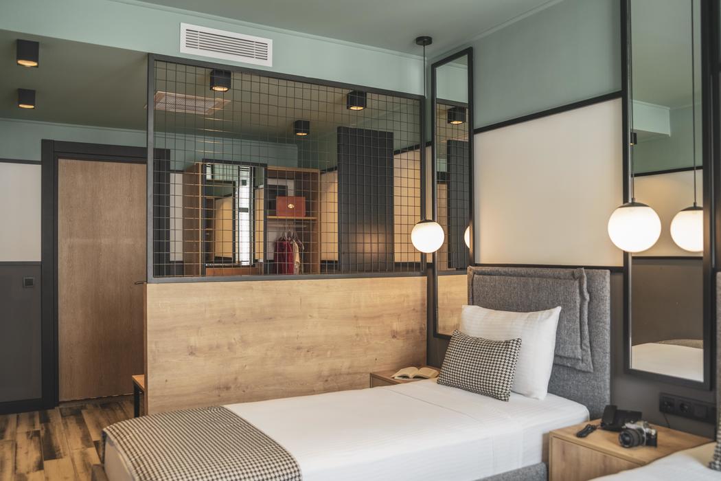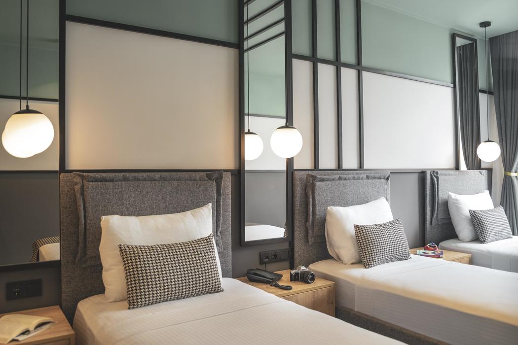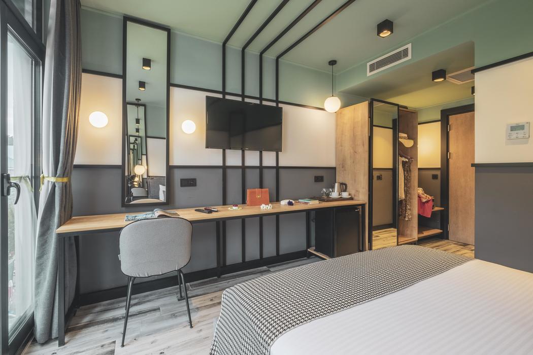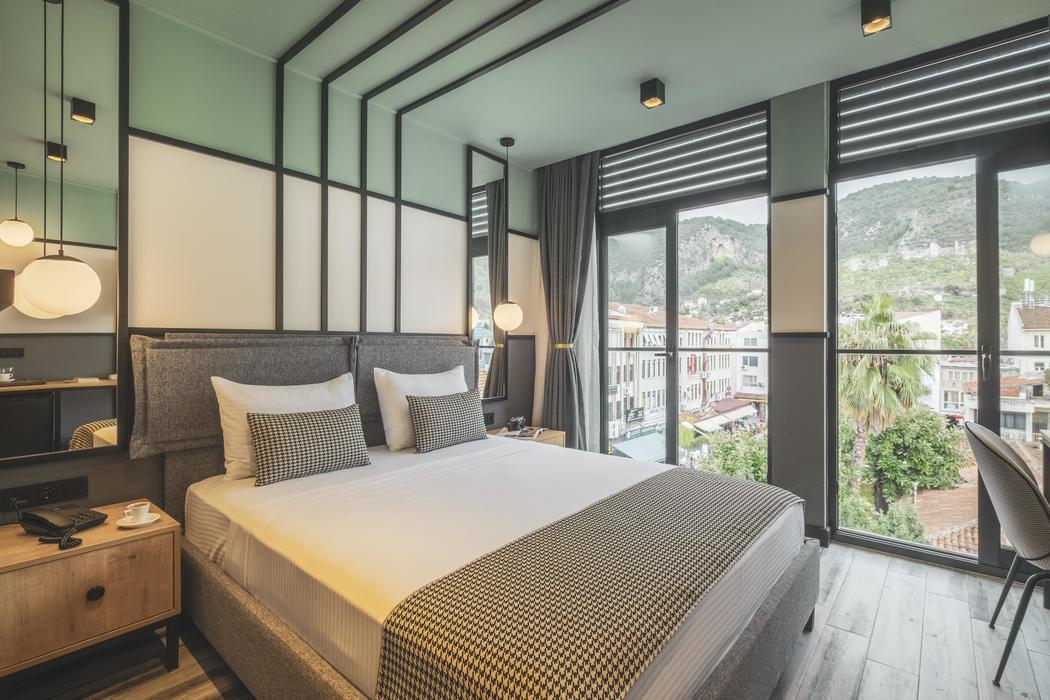 Açıklama: Fransız balkonlu olup 3 kişilik konaklamaya elverişlidir. Odada 3 adet tek kişilik yatak bulunuyor. Talebe göre çift kişilik yatağa dönüştürülebilir. Odalarda duşakabinli banyo, banyo malzemesi, terlik, 82”HD TV, Digiturk yayını, Wifi, VRF merkezi ısıtma (manuel kumanda edilebilir) para kasası, saç kurutma makinesi, banyo havlusu, mini bar (boş olarak) su ısıtıcı, bardak, fincan, çay kahve (günlük yenilenir)