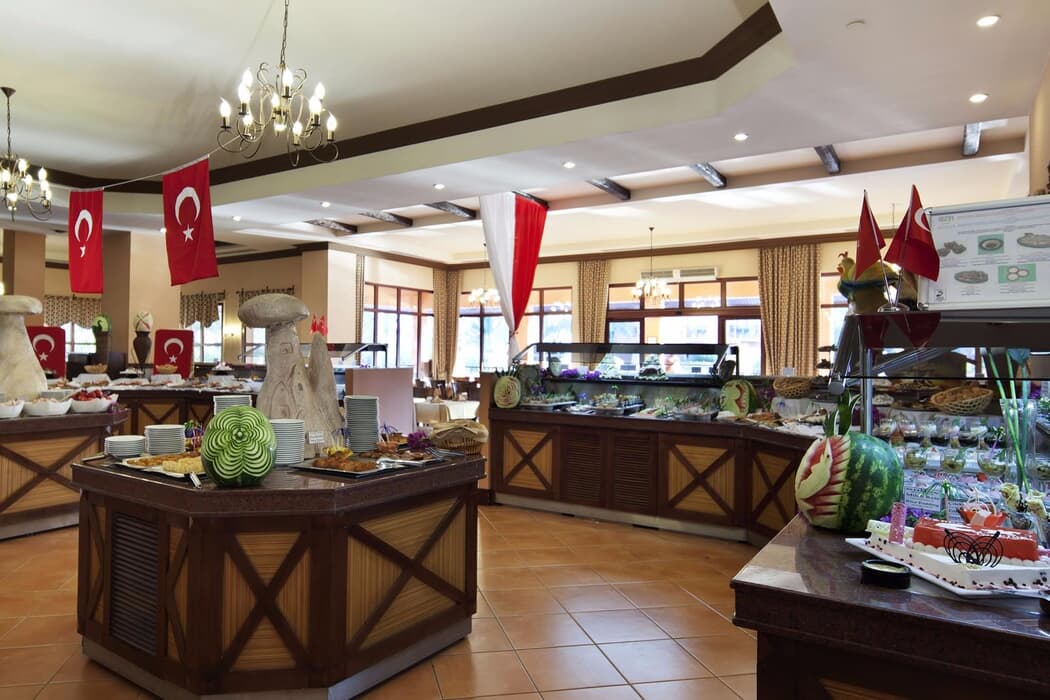 | Konaklama Açıklaması: | Ana Restoran 07:30 - 10:00 Sabah Kahvaltısı 10:00 - 11:00 Geç Kahvaltı 12:30 - 14:30 Öğle Yemeği 19:00 - 21:00 Akşam Yemeği Snack Servis 00:15 - 01:15 Gece Aperatifleri 12:00 - 15:00 Aperatif Bölgesi (Cloub Grand Side) 12:00 - 15:00 Gözleme (Cloub Grand Side) 12:30 - 15:00 Gözleme 12:30 - 14:30 Atlantis Snack Restoran 12:30 - 14:30 Pomodoro Snack Restoran 12:30 - 14:30 Amazon Snack Restoran 16:30 - 17:30 Kahve & Pasta Saati 16:30 - 17:30 Dondurma Barlar 10:00 - 02:00 Lobi Bar 10:00 - 18:00 Havuz Bar 10:00 - 18:00 Atlantis Sahil Bar 10:00 - 18:00 Pomodoro Sahil Bar 10:00 - 18:00 Amazon Sunset Bar A'la Carte Restoranlar (Rezervasyonlu) 19:00 - 21:00 Amazon Italyan Restoran 19:00 - 21:00 Atlantis Deniz Ürünleri Restoran 19:00 - 21:00 Pomodoro Italyan Restoran A' la Carte Restoranlar 7 gece ve üstü konaklamalarda bir restoran bir kez ücretsizdir. Tesisin belirlediği markalar dahilinde yerli alkollü ve alkolsüz içecekler ücretsizdir. Alkollü ve alkolsüz tüm içecekler bardak İle servis edilir, şişe ile servis edilmez. Restoranlarda kıyafet zorunluğu vardır. Mevsim ve hava şartlarına göre bar ve restoranların açılış ve kapanış saatleri otel yönetimi tarafından değiştirilebilir, bazı hizmetler iptal edilebilir. Yabancı içkiler ve taze sıkılmış meyve suları ücretlidir. |
