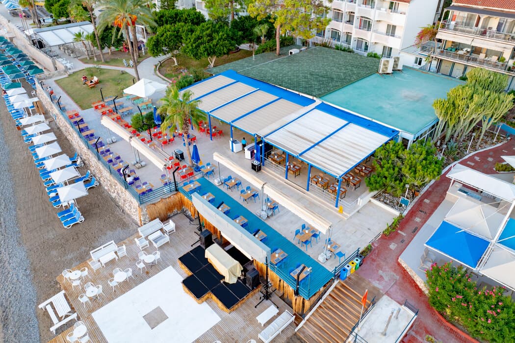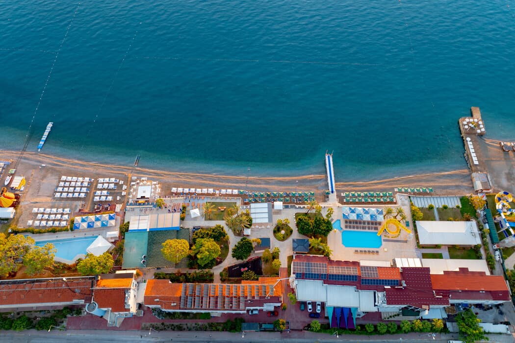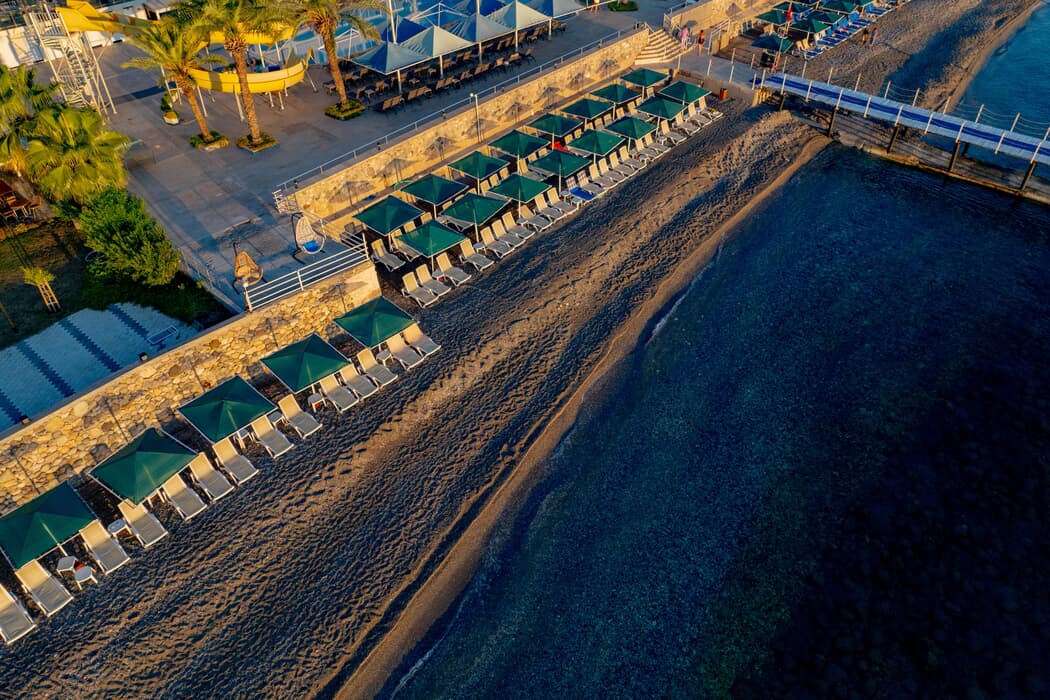 Denize sıfır tesisin 230 mt. uzunluğunda çakıllı plajı vardır.