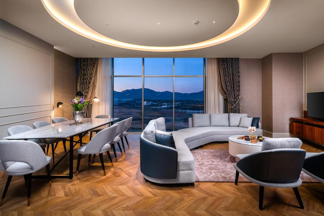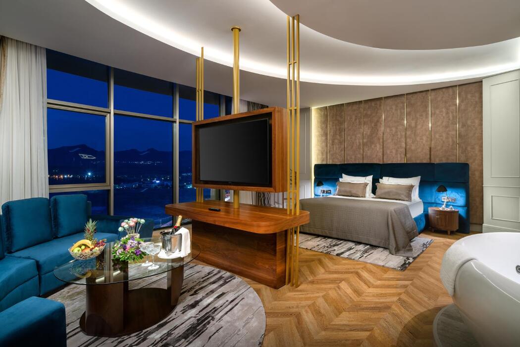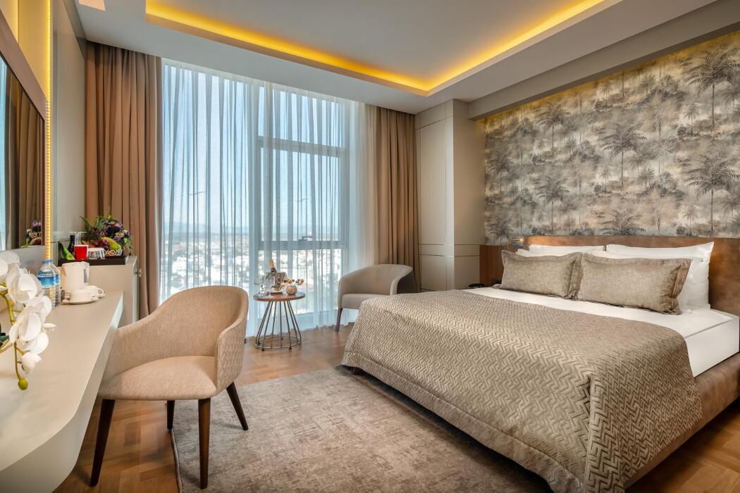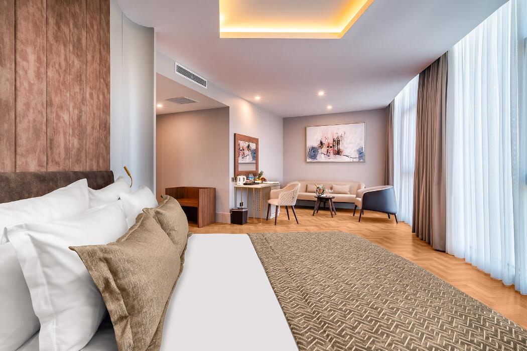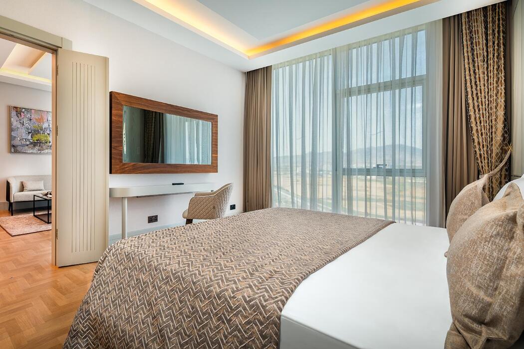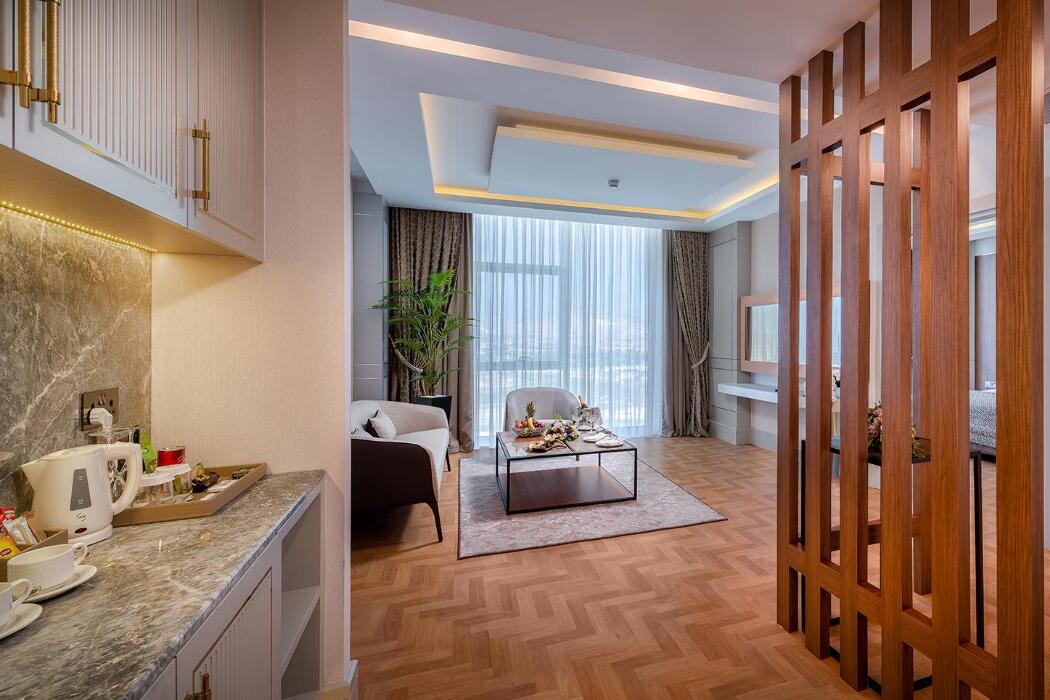 Açıklama: 1 salon, 1 Banyo (duş ve küvet), 1 yatak odasından oluşur. Misafirlerin rahatlığı ve konforu düşünülerek döşenmiş deluxe suitlerin tamamı şehir manzaralıdır.