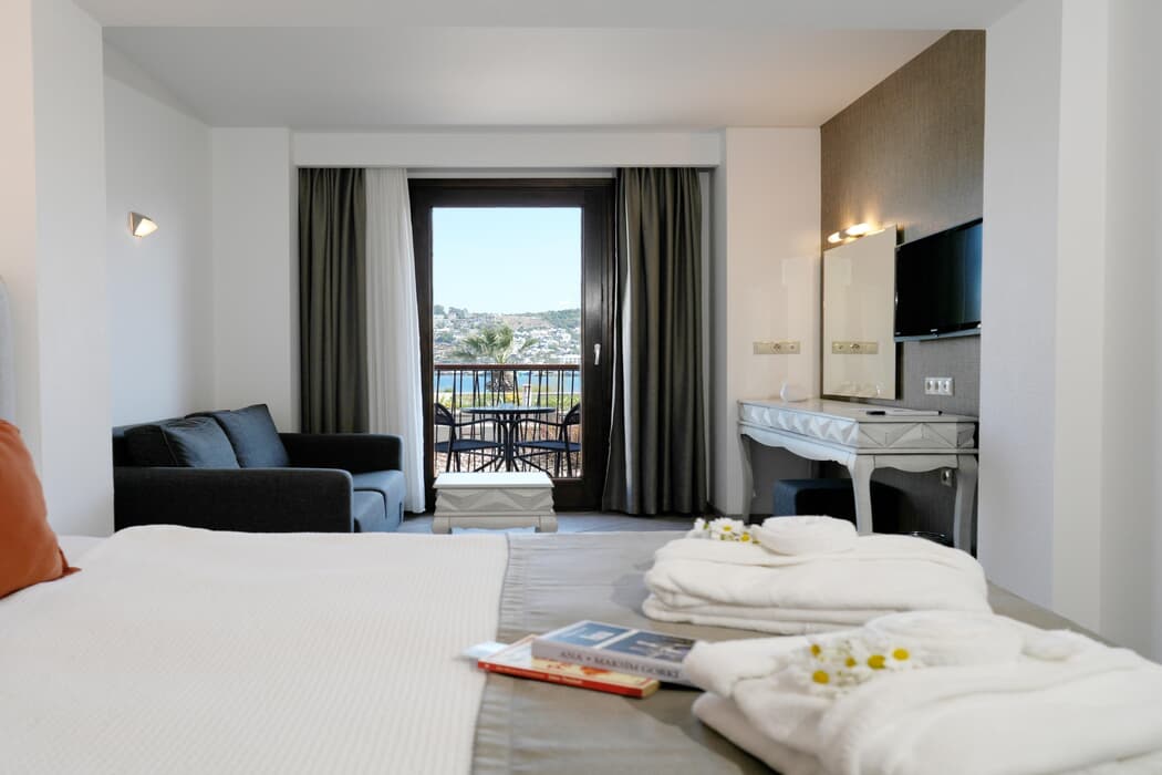 Açık yüzme havuzunda eğlenerek serinleme imkanı bulabileceksiniz. Tesis içerisinde yer alan spa, hamam ve masaj hizmetlerinden faydalanarak rahatlayabilir ve kendinizi yenilenmiş hissedebilirsiniz. Otel Bodrum Milas Havaalanı'na 48 km, Bodrum Merkez'ie 18 km uzaklıktadır.