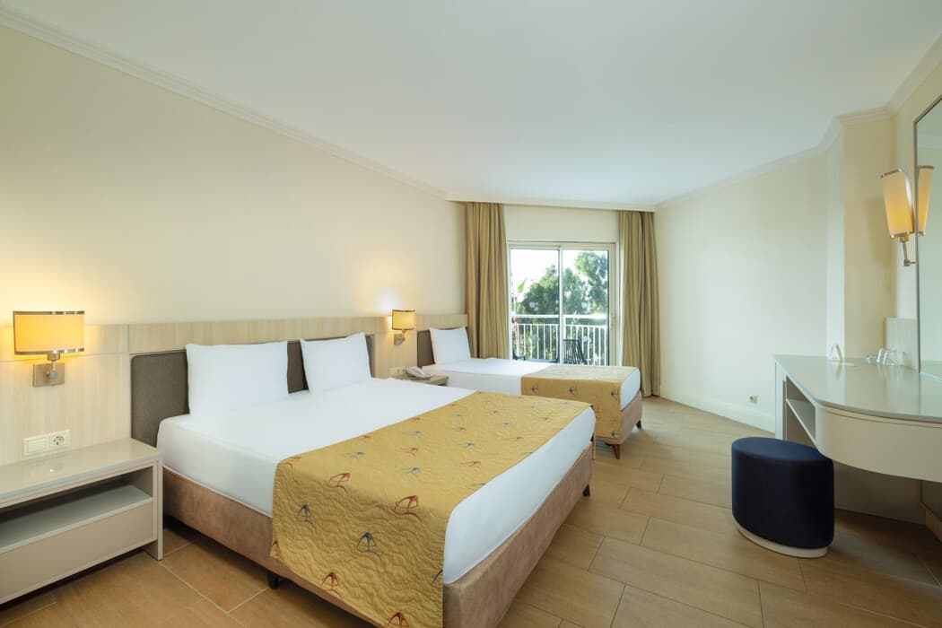 Oda servisi hizmeti bulunmaktadır. Otel Antalya Havaalanı'na 80 km, Antalya'ya 85 km, Side-Manavgat'a 20 km uzaklıktadır.