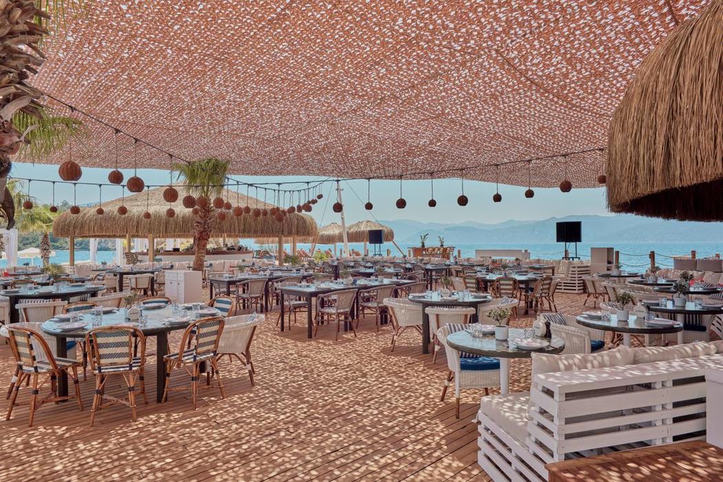 Geleneksel Yunan tavernası ile şık, altın rengi bir kumsal. Taptaze deniz ürünleri ve Yunan mutfağının eşsiz lezzetlerinden oluşan harika bir yemekten önce güneşin ve denizin tadını çıkarın.