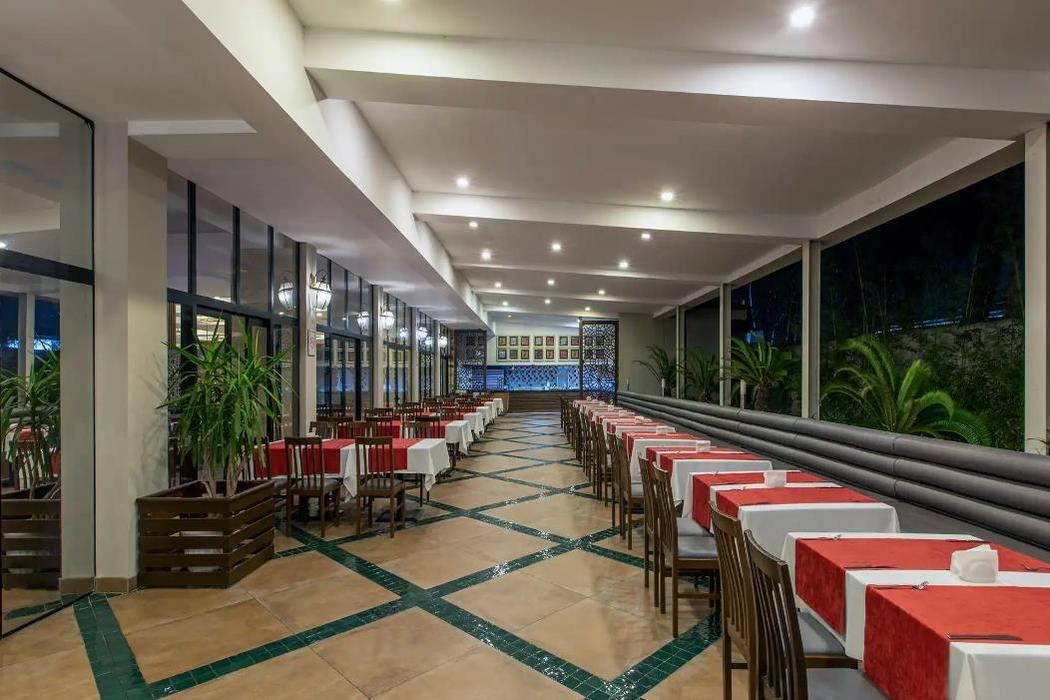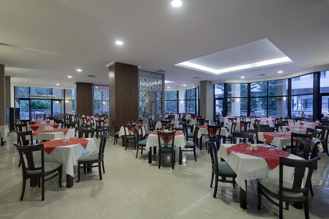 | Konaklama Açıklaması: | Restoranlar 07:30-10:00 Kahvaltı 10:00-11:00 Geç Kahvaltı 12:30-14:30 Öğle 18:30-21:30 Akşam Snack Bar 12:00-16:00 Snack 13:00-16:00 Dondurma Servisi 12:30-16:00 Pizza-Kek Servisi 12:00-17:00 Pasta-Kurabiye 23:30-00:30 Gece Snack 16:00-17:00 Kahve Molası Bar 10:00-00:00 Pool 10:00-18:00 Relax Pool 10:00-00:00 Lobby 00:00-00:00 Chillout Bar 23:30-02:00 Disco Bar 10:00-24:00 Servis Bar A La Carte ( Ücretli ve Rezervasyonlu ) 19:00-21:00 Seaport/İtalyan/Türk Özel çocuk bölümü ve diyet büfesi içeren 1 ana restaurant, 5 adet bar, 1 adet pastane, 3 adet A’la carte restaurant, 1 adet yarı açık disko, havuz kenarında snack servis, gözleme servisi, pizza servisi. A’la Carte Restaurant, haftada 6 gün rezervasyonlu ve ücretlidir. Misafirler A la Carte Restaurantın'dan konaklamaları boyunca 1 defa ücretsiz rezervasyon yaptırarak faydalanabilir. (7 gece ve üzeri konaklamaya 1 ücretsiz A la Carte) |