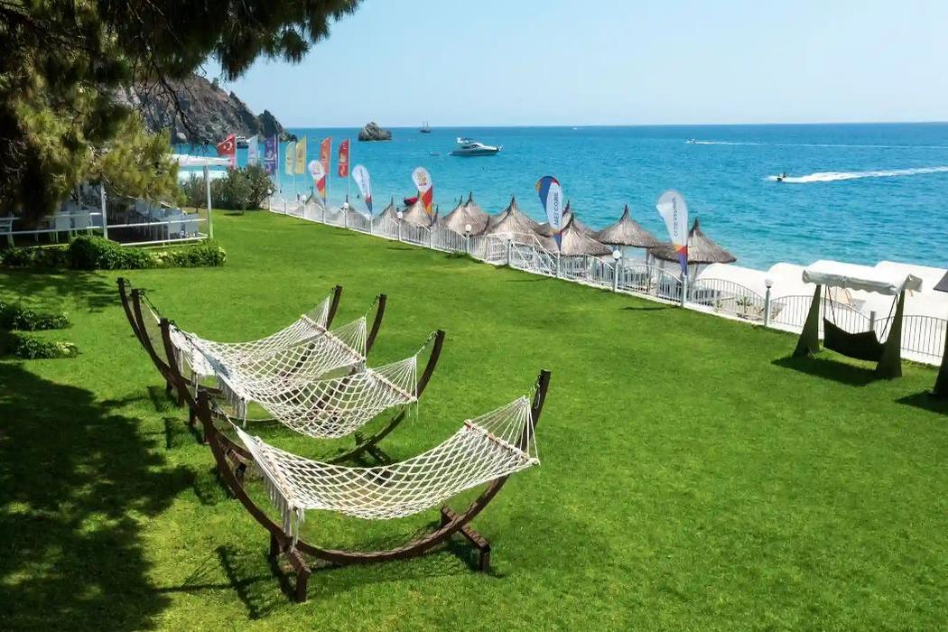 155 m uzunluğundaki sahilinde denizin tadını çıkartabilirsiniz. Tesisin kendine özel plajı, kum ve çakıldan oluşmaktadır. Tesis 3 adet ala carte restaurant ile misafirlere özel hizmet sunmaktadır. Açık ve kapalı yüzme havuzları ile eğlenme ve dinlenme imkanı bulabilirsiniz.