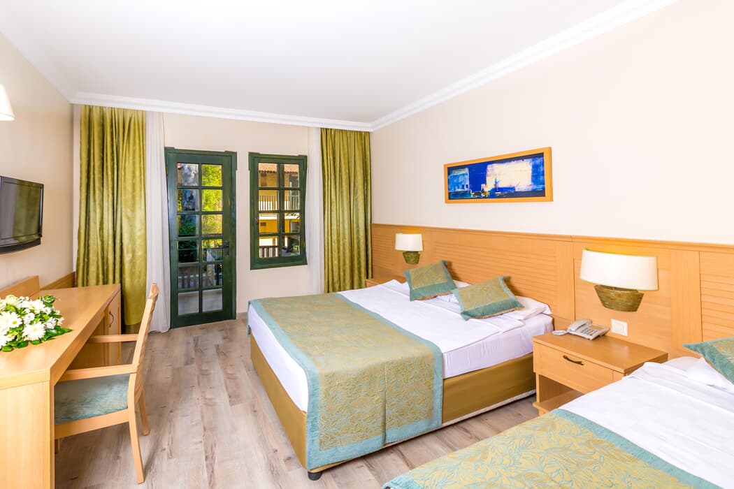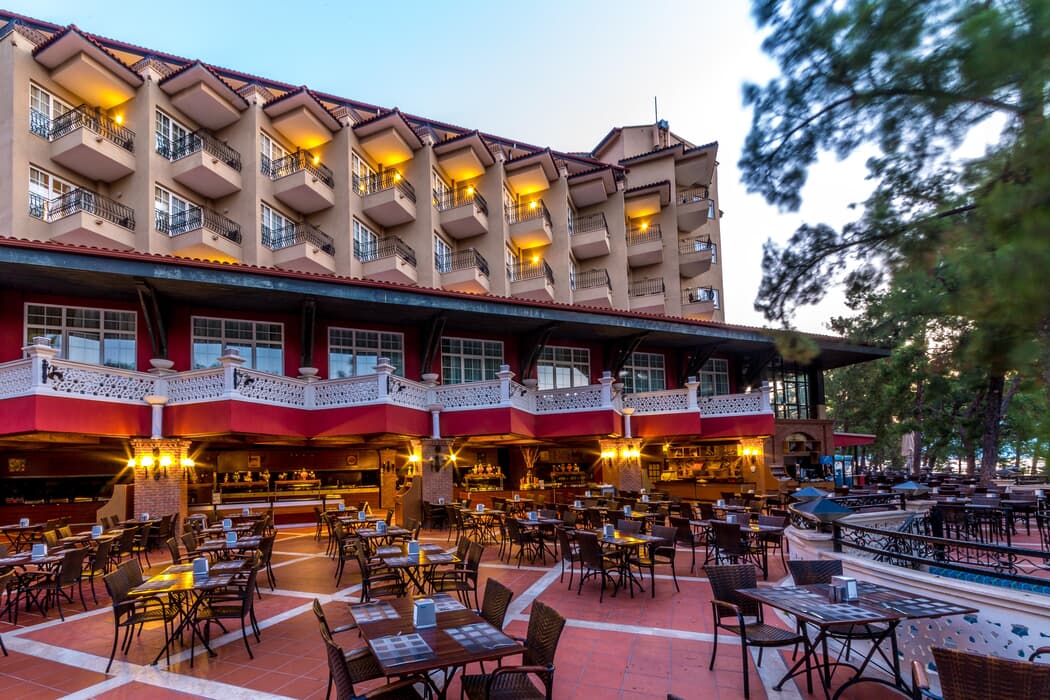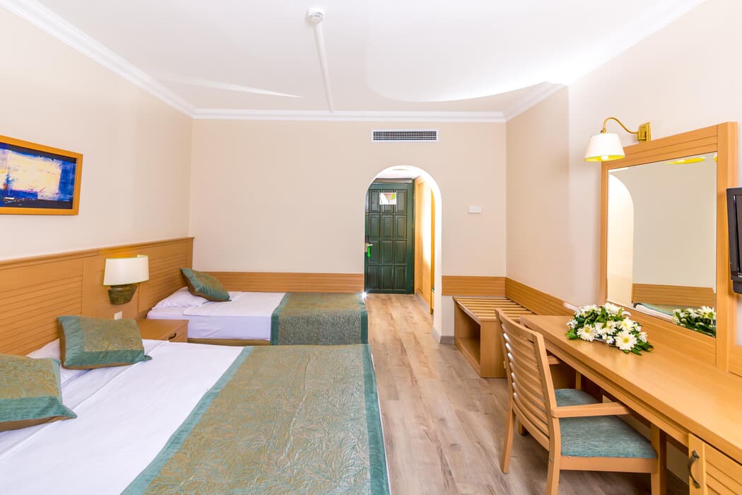 Yemekler vasat. 3 yıldızlı otel ayarında. Sürekli aynı yemekler çıkıyor. Menğler tavuk ve hamur işi ağırlıklı. Kamu kurumlarına ait tatil kampları gibi. Yemeklerde kullanılan yağda bir sorun var sürekli şişkinlik hissediyorsunuz. Az yemek yeseniz de mideniz hep şiş. Yataklar ve yastıklar rahatsız. Klimalar soğutmuyor eski. Odalar da rutubetli ve eski.