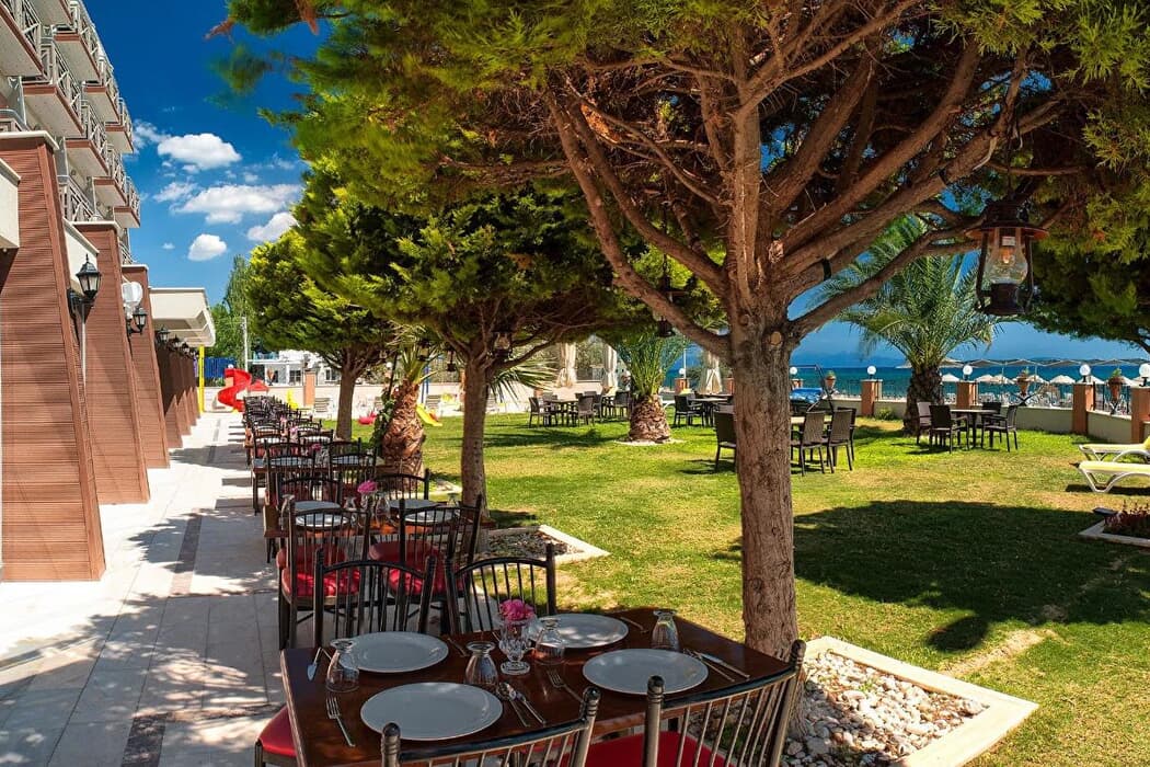 Tesisin kendine özel kum plajı bulunmaktadır. Açık yüzme havuzunda eğlenerek serinleme imkanı bulabileceksiniz. Tesis herşey dahil konseptinde hizmet vermektedir. Tesiste bulunan ala carte restaurant, açık restaurant, kapalı restaurantta yemeklerinizi yiyebilirsiniz.