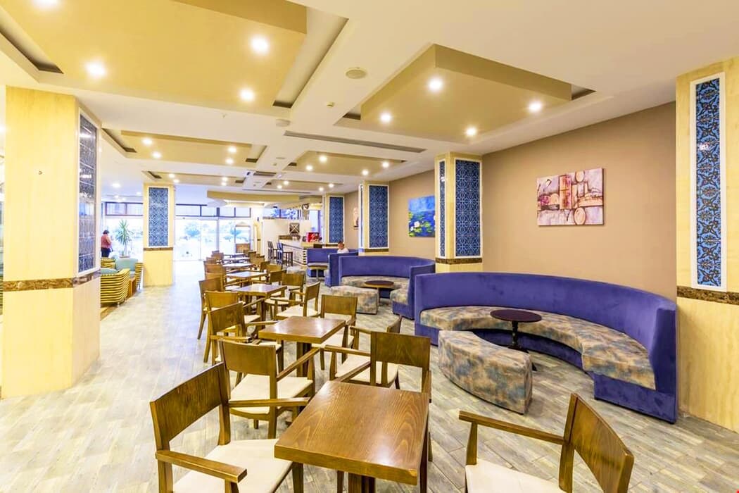 Otelin hizmetlerinden memnun kaldık güzel ve keyifli bir tatil geçirdik. Yemek çeşitliliği bol ve yemekler lezzetliydi. Otelde temizlik çok iyiydi ortak alanlar tertemizdi. Personel yardımsever ve güler yüzlüydü.