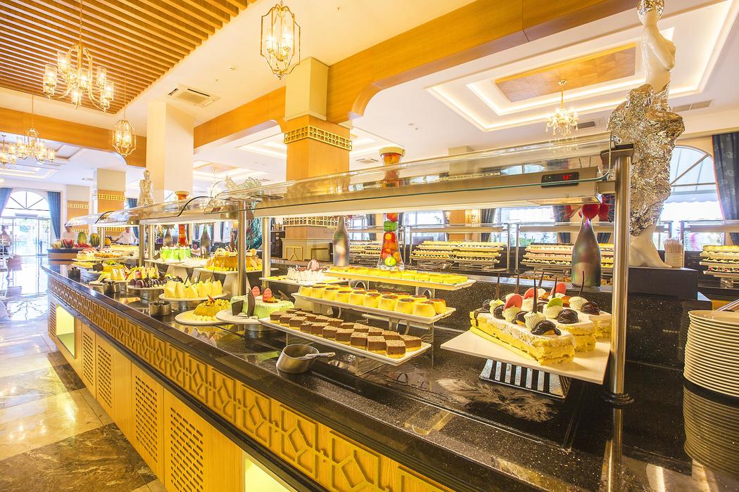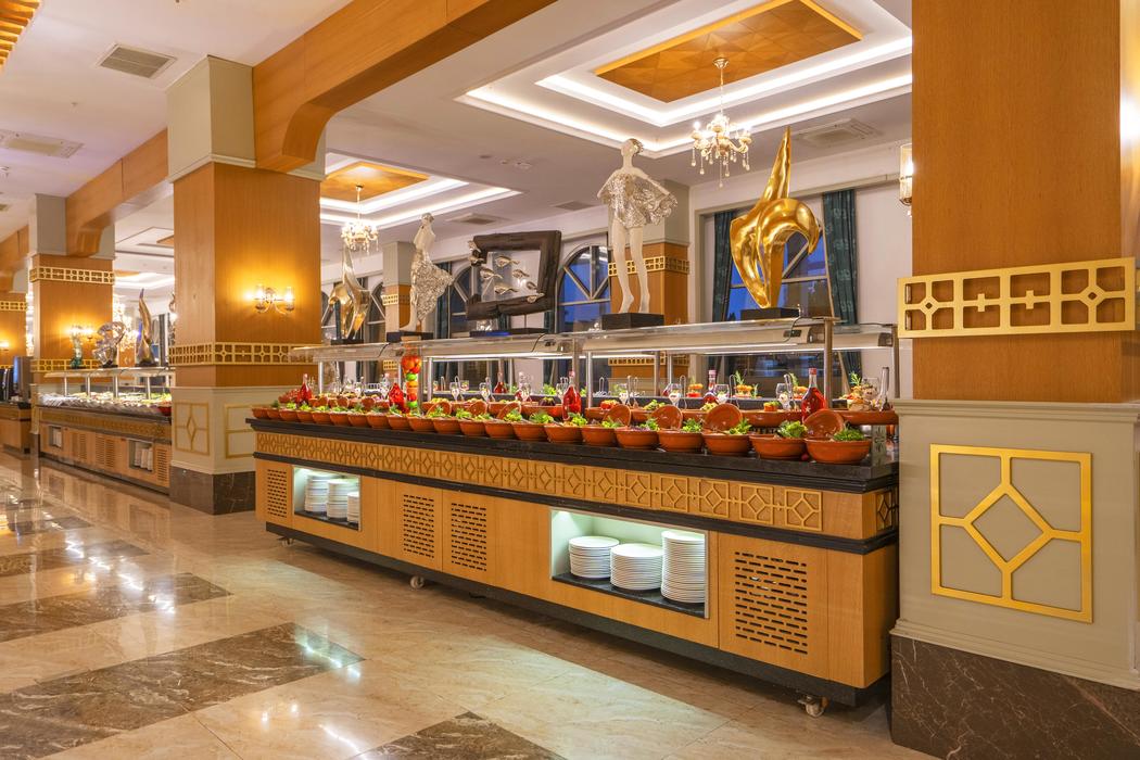 | Konaklama Açıklaması: | Ana Restoran 07:00 - 10:00 Kahvaltı 10:00 - 10:30 Geç Kahvaltı 12:30 - 14:00 Öğle Yemeği 18:30 - 21:00 Akşam Yemeği 23:00 - 07:00 Gece Yarısı Mini Büfe Atıştırmalıklar 12:00 - 16:00 Snack Bar 1 Sahilde 12:00 - 16:00 Snack Bar 2 Havuz Kenarı 12:00 - 00:00 Sokak Lezzetleri Sahilde (15.04 ile 15.10) 11:00 - 17:00 Pastane 14:00 - 17:00 Dondurma Barlar 24 Saat - Lobby Bar 10:00 - 24:00 Lounge Bar 10.00 - 18:00 Havuz Bar 12:00 - 16:00 Snack Havuz Bar 10:00-18:00 / 20:00-02:00 Plaj Bar 23:30 - 02:00 Disko Bar A'la Carte Restoranlar 18:30 - 21:00 Osmanlı Mutfağı 18:30 - 21:00 Italyan Mutfağı 18:30 - 21:00 Deniz Ürünleri 18:30 - 21:00 Asya Mutfağı 18:30 - 21:00 Meksika Mutfağı 08:00 - 10:00 Geleneksel Türk Kahvaltısı (Ücretli) A'la carte restoranlar 7 gece ve üzeri konaklamalarda bir restoran bir kereliğine ücretsizdir. |