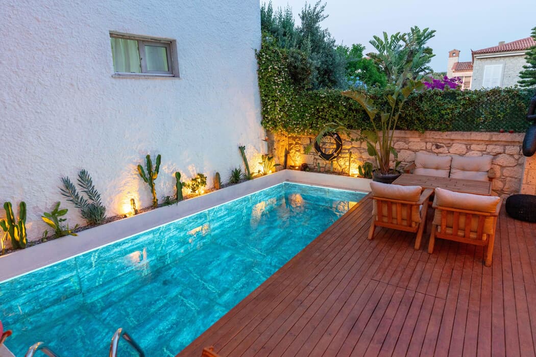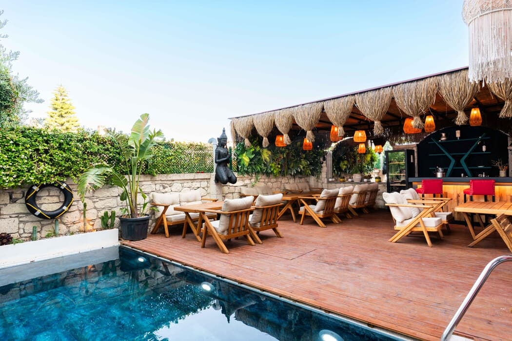 | Konaklama Açıklaması: | Karnelyan Alaçatı Butik Otel, İzmir'in popüler tatil beldesi Alaçatı'da, huzurlu ve konforlu bir konaklama deneyimi sunuyor. Otel, Alaçatı Çarşısı'na sadece 3 dakikalık yürüme mesafesinde olup, Oasis Aquapark, Ilıca Plajı ve Alaçatı Marina gibi önemli noktalara da yakın konumda bulunuyor . Yalnızca yetişkinlere hizmet veren bu butik otel, toplam 8 odasıyla sakin bir atmosfer sunuyor. Odaların her biri klima, düz ekran TV, elektrikli su ısıtıcısı, kasa ve özel banyo gibi olanaklarla donatılmıştır . Otelin sunduğu olanaklar arasında sezonluk açık yüzme havuzu, güneşlenme terası, bahçe, restoran ve bar bulunmaktadır. Konuklar, yerel lezzetlerle hazırlanan alakart kahvaltının tadını çıkarabilirler . Ayrıca, ücretsiz Wi-Fi erişimi ve 24 saat açık resepsiyon hizmeti mevcuttur. Karnelyan Alaçatı Butik Otel, çok dilli personeliyle (Türkçe, İngilizce, Almanca, Fransızca, Rusça) konuklarına yardımcı olmaktadır . Otel, evcil hayvan kabul etmekte ve havaalanı servisi gibi ek hizmetler sunmaktadır . Alaçatı'nın merkezine yakın konumuyla Karnelyan Alaçatı Butik Otel, hem dinlenmek hem de çevreyi keşfetmek isteyenler için ideal bir tercihtir. |