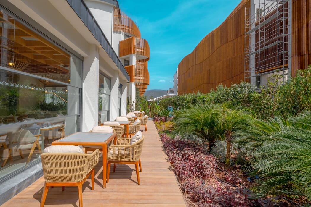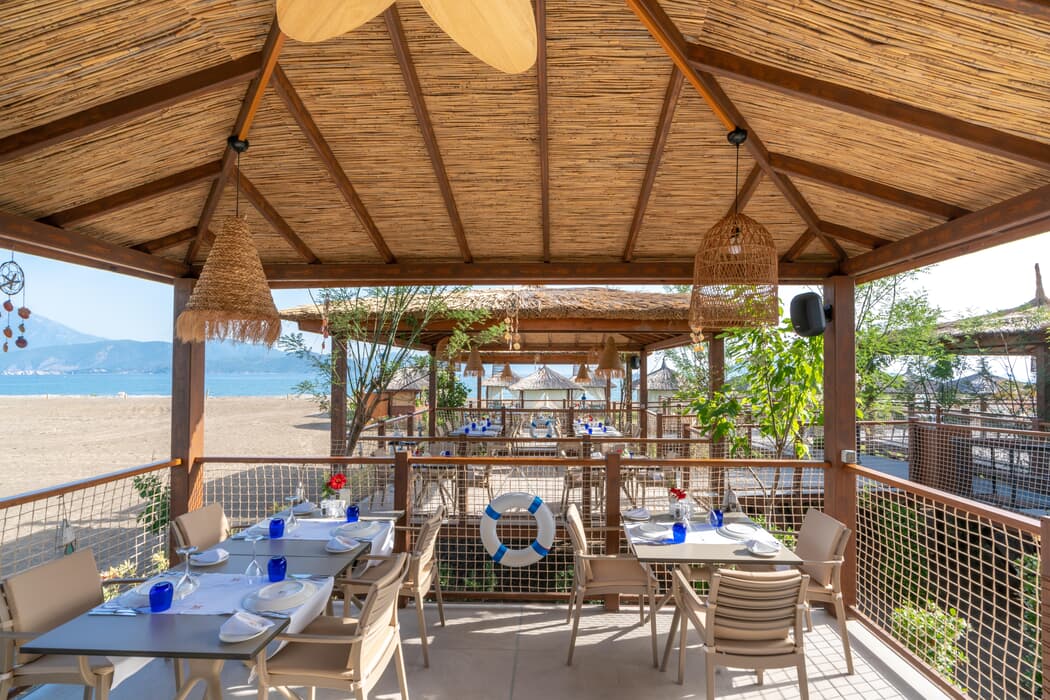 230 m uzunluğundaki sahilinde denizin tadını çıkartabilirsiniz. Tesisin kendine özel plajı, kum ve çakıldan oluşmaktadır. Tesis 5 adet ala carte restaurant ile misafirlere özel hizmet sunmaktadır. 4 adet açık yüzme havuzu ile keyifli bir tatil yaşayabilirsiniz.