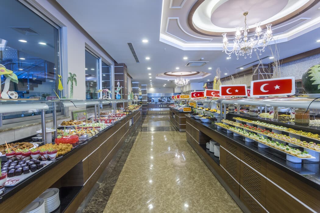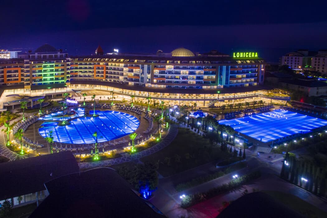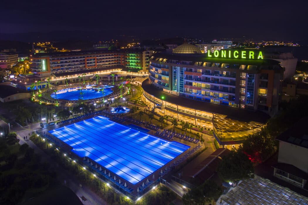 | Konaklama Açıklaması: | Ana Restoran 07:00-10:30 Sabah Kahvaltısı 12:30-14:30 Öğle Yemeği 19:00-21:00 Akşam Yemeği 21:00-23:00 Geç Akşam Yemeği 23:00-07:0 Gece Yemeği Snack 10:30-16:00 Gözleme Çeşitleri 10:30-16:00 Fast Food 10:30-16:00 Aqua Snack Fast Food 10:30-16:00 Meyve Dünyası 10:30-16:00 Ice Cream House 00:00-00:00 Lale Patisserie 16:00-18:00 Kahve ve Pasta Saati (Açık Büfe) Barlar 10:00-01:00 Lobby Bar 10:00-01:00 TV Bar 10:00-21:00 Coffee House 00:00-00:00 Lale Patisserie Bar 10:00-01:00 Waterfall Bar 10:00-16:00 Snack Bar 10:00-21:00 Olympic Bar 10:00-01:00 Pool Bar (B Blok) 10:00-01:00 Aspera Bar 10:30-16:00 Fast Food Bar 10:30-16:30 Aquapark Bar 10:00-00:00 Sunset Bar 21:00-00:00 Pub Bar 00:00-02:30 Olive Bar A'la Carte Restoran (Rezervasyonlu ve Ücretli) 19:00-21:00 Çamlık Balık Restoran Yerli alkollü-alkolsüz ve bazı ithal içecekler ultra her şey dahil sistemine dahildir. Alkollü içecekler saat 10:00-02:30 arası ultra her şey dahil konseptine dahildir. Meyve dünyası, İce cream house, aqua fast food, gözleme ( 1 Mayıs -15 Ekim Açıktır. ) Balık Restoran 15 Mayıs–15 Ekim tarihleri arasında haftanın 6 günü hizmet vermektedir. Gluten free menü bulunmamaktadır. Misafirlere hangi yiyeceklerde glüten olduğunun bilgisi verilmektedir. Ancak bununla ilgili bir mesuliyet kabul edilmemektedir. Tesis misafirleri , Lonicera World Hotel tesisin ana restoranlarını kullanamamaktadır. |