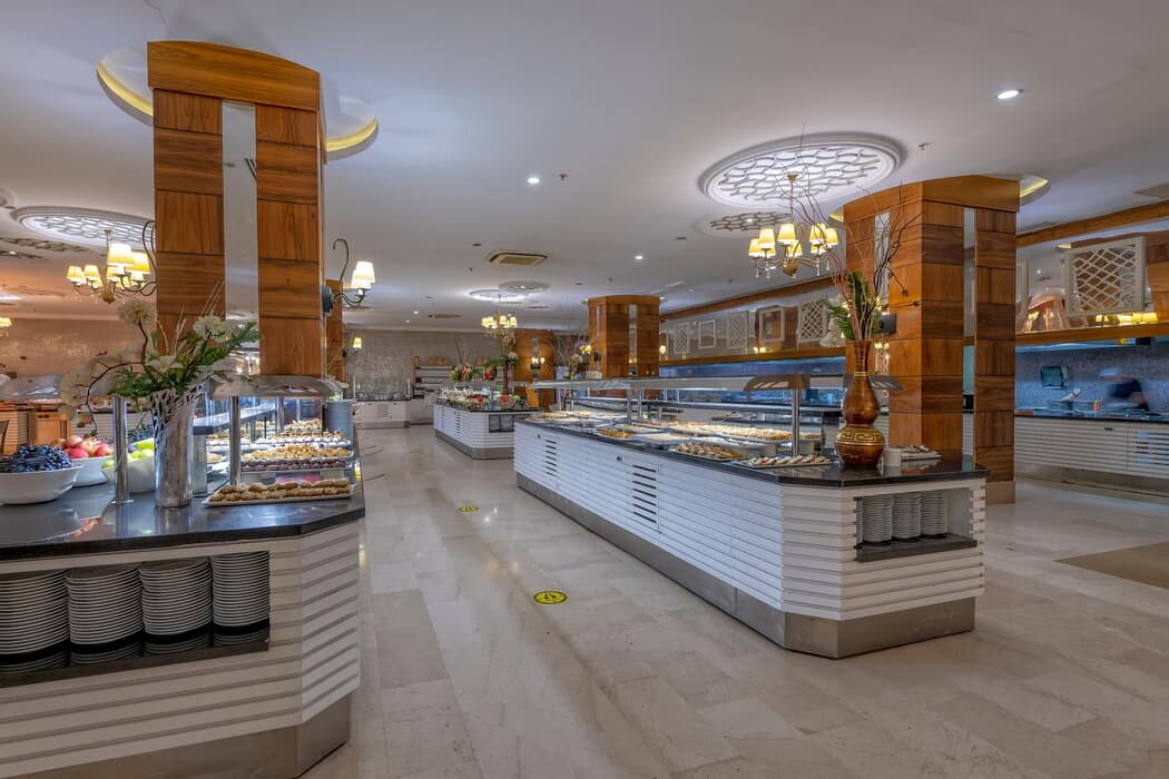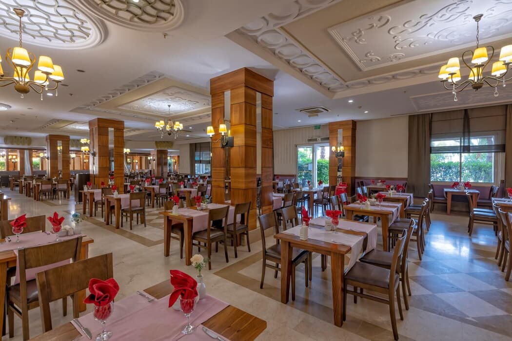 | Konaklama Açıklaması: | Ana Restoran 07:00-10:30 Sabah Kahvaltısı 12:30-14:30 Öğle Yemeği 19:00-21:00 Akşam Yemeği Snack Barlar 10:00-15:00 Beach Bistro 22:00-02:00 Gece Çorbası 10:00-17:00 On The Beach Snack Bar 10:00-18:00 Pastane 00:00-00:00 Snack Bar 10:00-22:00 Dondurma 10:00-15:00 Gözleme Barlar 10:00-23:59 Lobby & Teras Bar 00:00-00:00 Pool Bar 07:00-10:30 Restoran Bar 12:30-14:30 Restoran Bar 19:00-21:00 Restoran Bar 10:00-17:00 Beach Bar 23:00-02:00 Disko & Karaoke Bar 19:00-21:00 A La Carte Restoranlar ( Ücretli ve Rezervasyonlu ) Balık İtalyan Mutfağı A'la Carte Osmanlı Mutfağı A'la Carte |