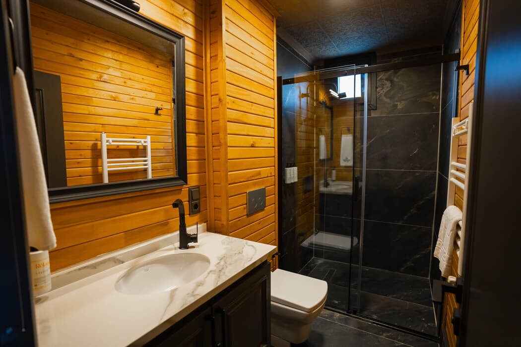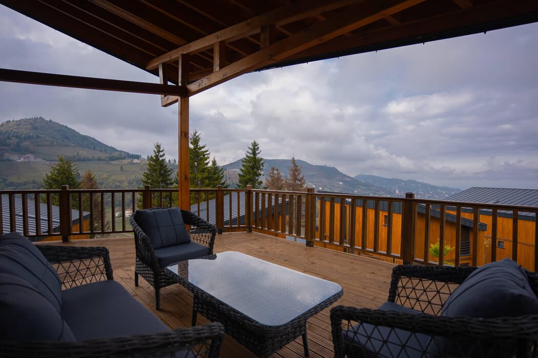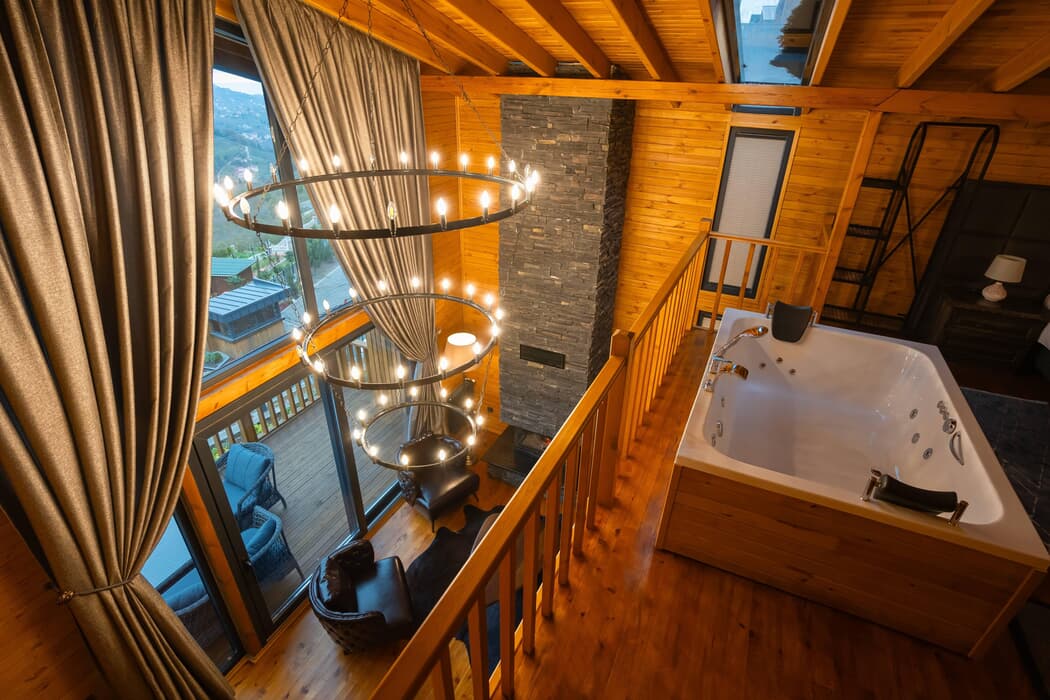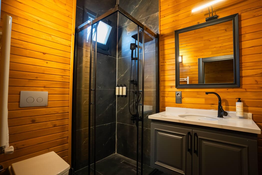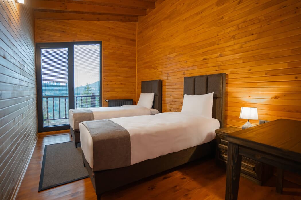 Tamamı ahşap mimaride inşa edilmiş, jakuzili, şömineli ve sinema sistemli özel bungalovlar; dört mevsim konforu sunan kaloriferli ısıtma ve klima sistemleriyle donatılmıştır.