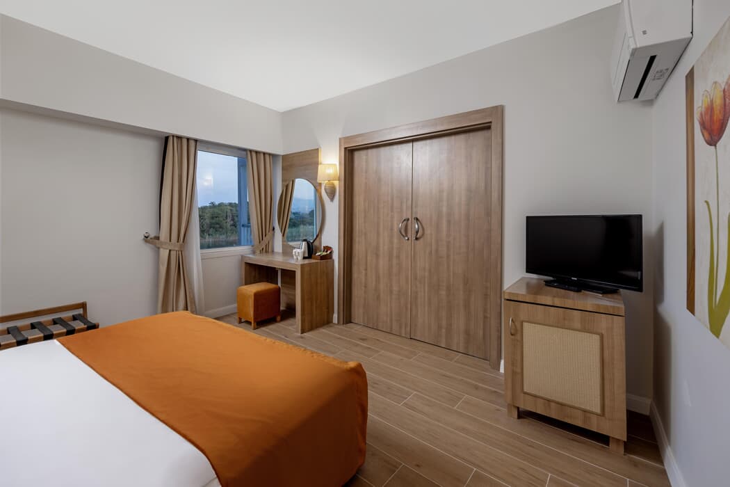 Konaklamanız boyunca faydalanabileceğiniz TV, kablosuz internet, telefon ve oda kasası standart odalarda mevcuttur. Oda servisi hizmeti bulunmaktadır. Otel Antalya Havaalanı'na 70 km, Side'ye 7 km, Antalya'ya 80 km uzaklıktadır.