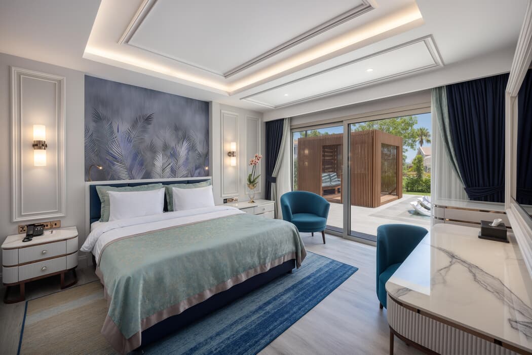 Açıklama: Tüm Deluxe Suite odalarda French bed 1 yatak odası, 1 salon ve 1 banyodan oluşmaktadır.