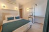 Açıklama: Deniz manzaralı balkonuyla öne çıkan bu geniş 1+0 aile suitimiz, özellikle çocuklu aileler ve uzun süreli konaklayan balayı çiftleri için ideal bir tercihtir. Odanın içinde elektrikli ocak, buzdolabı ve çamaşır makinesi bulunan özel bir mutfak yer alır. 1 büyük yatak, 1 açılır kanepe ve talep üzerine eklenebilecek 1 ekstra yatak ile konforlu bir uyku alanı sunar. Klima ve televizyon gibi olanaklarla donatılmıştır.