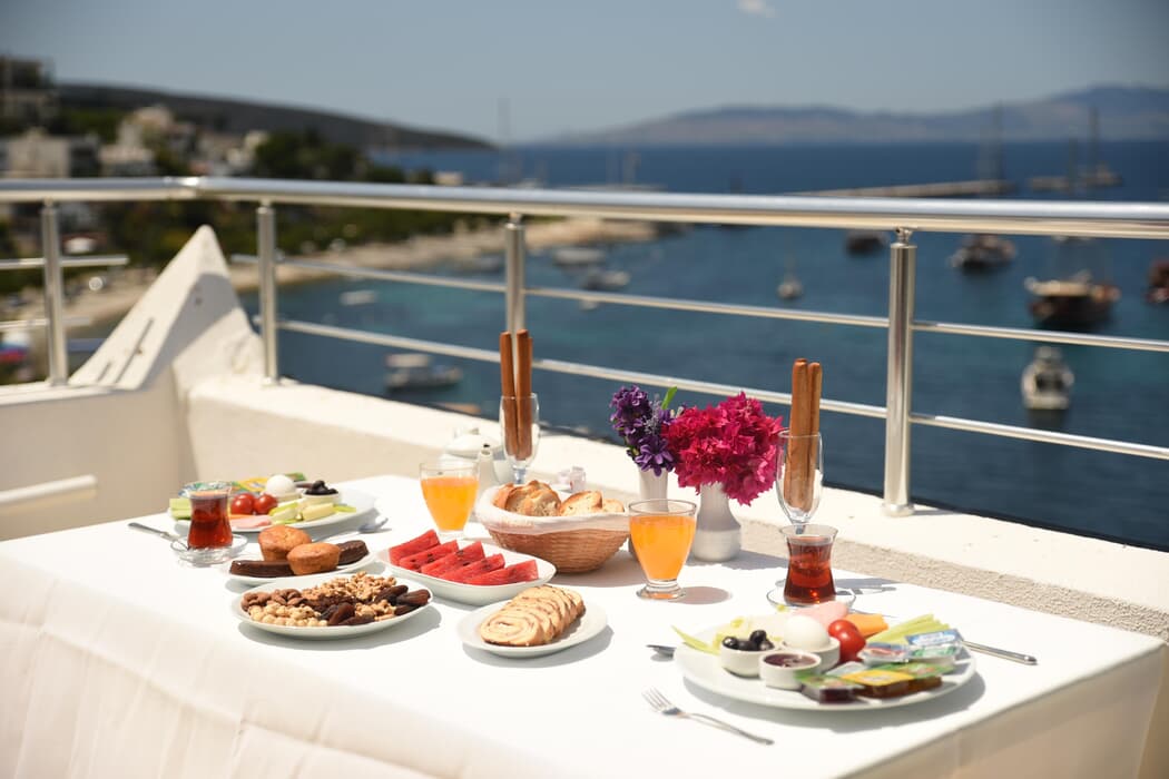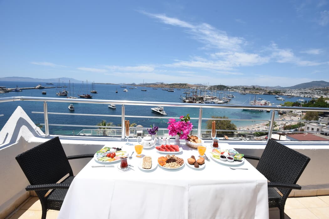 Otelimiz, Bodrum'un kalbinde yer almakla kalmayıp, çoğu odamızda muhteşem deniz manzarası sunmaktadır. Ayrıca, Bodrum Kalesi'nin doğrudan manzarasıyla da sizlere eşsiz bir deneyim sunuyoruz. Sahile sadece 30 metrelik yürüyüş mesafesindeyiz.