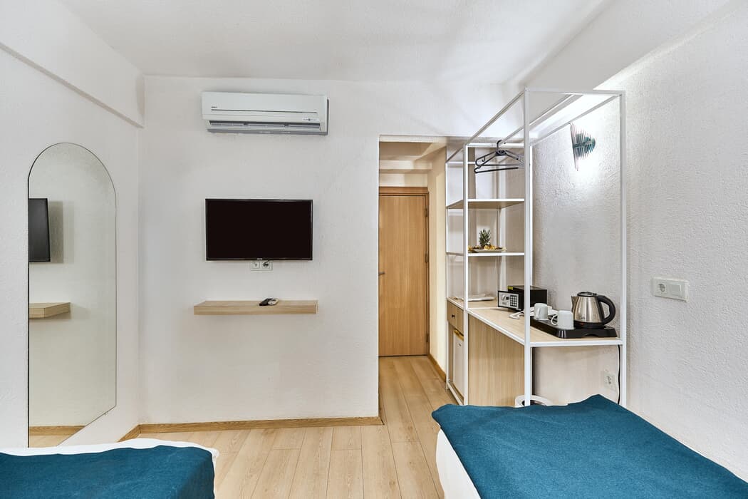 Açıklama: Şehir manzaralı bu oda, 2 ayrı yataklıdır. Balkonsuz olup sade ve işlevsel bir konaklama sunar. Klima, mini buzdolabı ve TV mevcuttur.