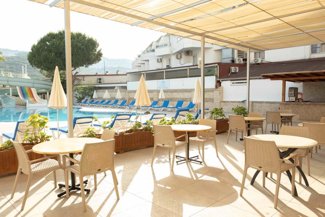| Konaklama Açıklaması: | Tesis iki konseptte hizmet vermektedir. Alkolsüz Her Şey Dahil Sabah, öğle ve akşam açık büfe yemekler Gün içerisinde snack, ikramlar ve çay saati Tesisin belirlemiş olduğu yerli alkolsüz içecekler servis edilir. Belirtilen hizmetler dışındaki tüm ekstra hizmetler ücretlidir. Her Şey Dahil Sabah, öğle ve akşam açık büfe yemekler Gün içerisinde snack, ikramlar ve çay saati Tesisin belirlemiş olduğu yerli alkollü-alkolsüz içecekler servis edilir. Her şey Dahil konsepti 10:00 - 24:00 saatlerinde geçerlidir. Belirtilen hizmetler dışındaki tüm ekstra hizmetler ücretlidir. Taze sıkılmış portakal suyu,dondurma,kuru temizleme,yabancı içecekler,şişe şarap ekstra ücretlendirilir. |
