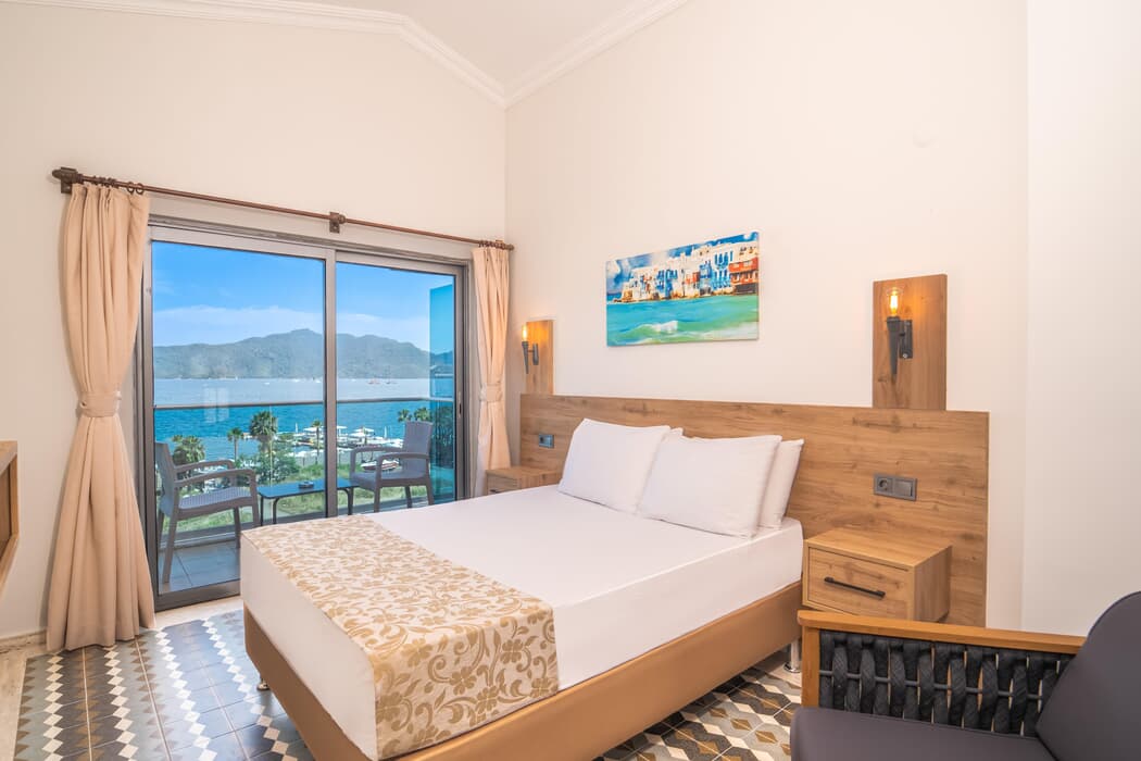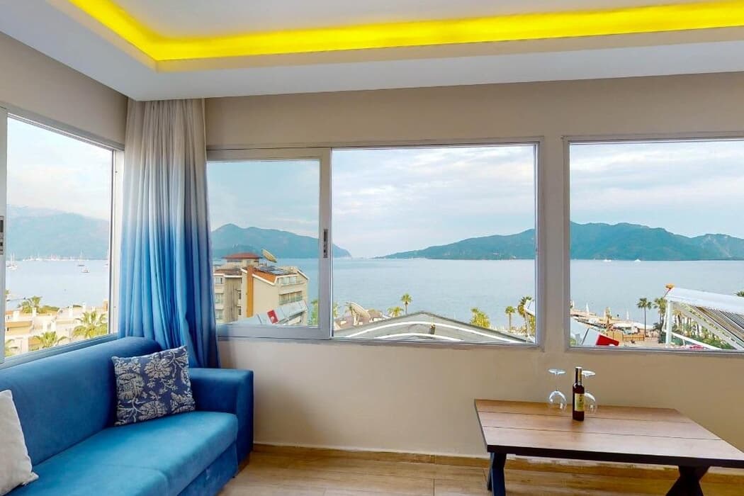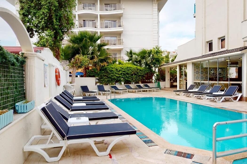 Modern ve konforlu odalarında klima, balkon, minibar ve TV gibi olanaklar sunan tesis; oda kahvaltı ve yarım pansiyon konseptleriyle hizmet vermektedir. Merkezi konumu sayesinde pek çok kafe, restoran, eğlence ve alışveriş noktalarına kolayca ulaşabilir, Marmaris’in canlı atmosferini doyasıya yaşayabilirsiniz.