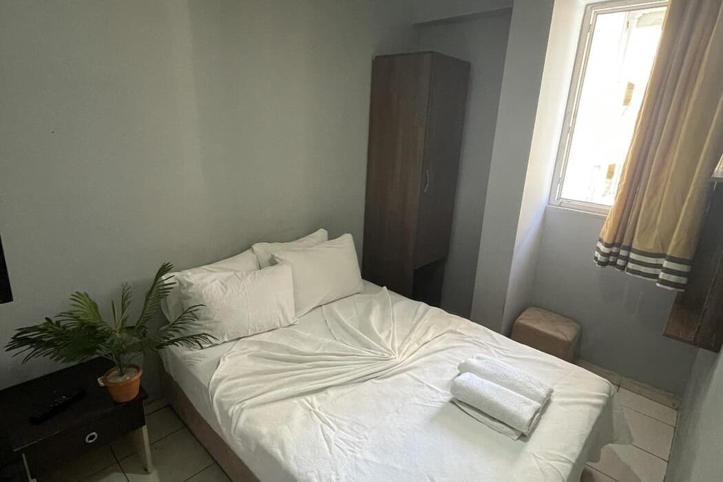 Açıklama: 1+0 Çift kişilik odamız, iki kişi için konforlu ve konforlu bir konaklama sunmak üzere tasarlanmıştır. Odada rahat bir çift kişilik yatak ve misafirlere özel banyo bulunmaktadır. Tesis genelinde sunulan ücretsiz kablosuz internet bağlantısı özellikleri sayesinde internete kolayca erişebilirsiniz. Merkezi olarak yer alan otelimiz; Ulaşım, alışveriş ve şehirdeki önemli noktalara yakınlığıyla misafirlere büyük bir konfor sağlar.