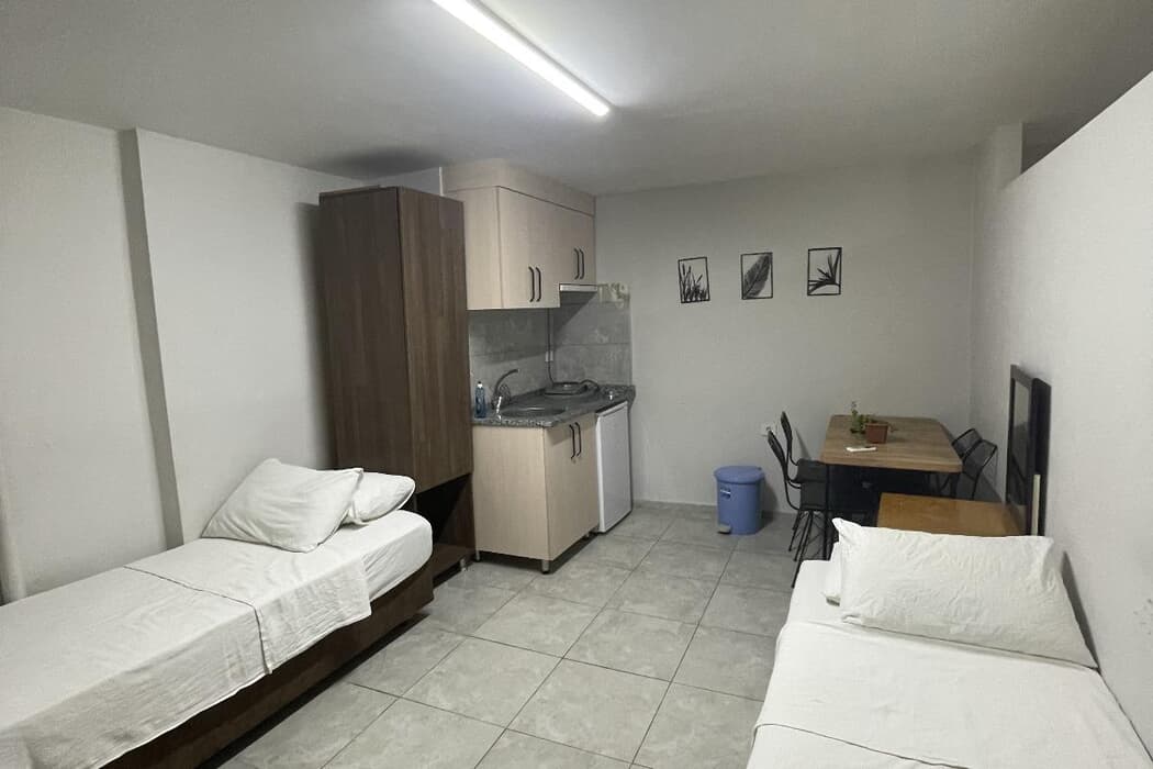 Açıklama: Yarım mutfaklı 1+1 apart odamız, kalabalık aileler ve grup konaklamaları için geniş ve konforlu bir alan sunuyor. Odada bir adet çift kişilik yatak ve iki adet tek kişilik yatak ile misafirlere özel banyo bulunmaktadır. Yarım mutfak alanı, temel ihtiyaçlarınızı karşılayacak şekilde bağışlanır. Tesis genelinde sunulan ücretsiz kablosuz internet bağlantısı özellikleri sayesinde internet boyunca kolayca erişebilirsiniz.