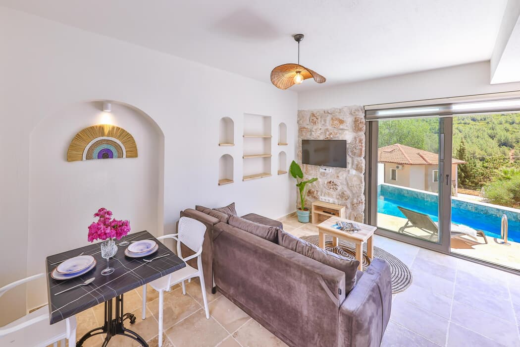 Konaklama Açıklaması: | Kaş ın Çukurbağ köyünde yer alan bu villamız şehrin gürültüsünden uzakta,dağ manzarasına karşı sadece dinlenmek amacıyla tatil yapmak isteyen misafirlerimiz için bulunmaz bir fırsattır. Oldukça özel olan villa nın kendisine yakışır bir avlusu ve büyük bir özel yüzme havuzu bulunmaktadır.etrafı duvarlarla ile çevrili olan villamız panaromik doğa manzarası süslemektedir. Müsaitlik olması durumunda yan tarafında bulunan aynı mimariye sahip Villaların havuzuları korunaklı yani dışardan kesinlikle gözükmicek şekilde Özel yüzme havuzu ve güneşlenme sahası dışarıdan görünmez, korunaklıdır. Balayı çiftleri, dış gözlerden uzak kalmak isteyenler ve muhafazakar aileler tarafından tercih edilmektedir . Not:Fiber wifi mevcuttur. |