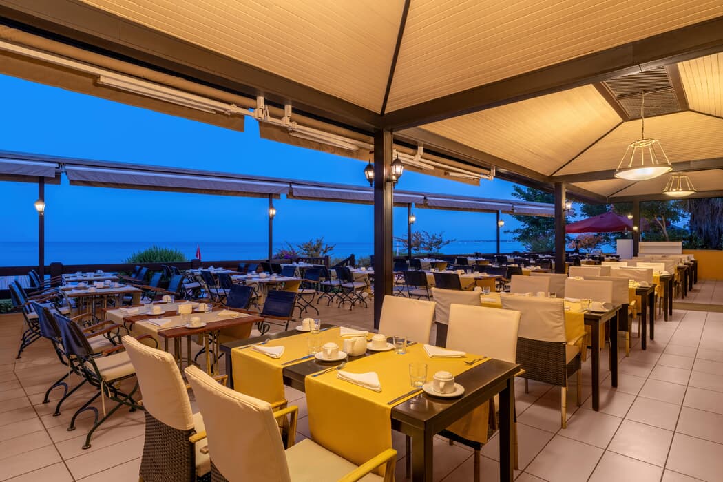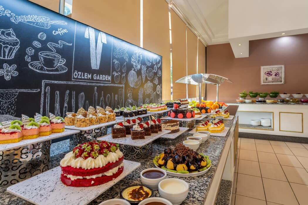 | Konaklama Açıklaması: | Restoranlar 07:30-10:00 Kahvaltı 12:30-14:00 Öğle Yemeği 15:30-16:30 Cafe Break ve Dondurma 19:00-21:00 Akşam Yemeği 15:00-16:00 Dondurma Alkollü içecekler 10:00 - 24:00 arası servis edilir. Herşey dahil konsepti yerli içecekler ve soft içecekler içermektedir. Her Şey Dahil konaklamalarda; sabah, öğle ve akşam açık büfe yemekler ücretsiz. Tesisin belirlediği markalar dahilinde bazı yerli alkollü ve alkolsüz içecekler 10.00-00.00 saatleri arasında ücretsiz. |