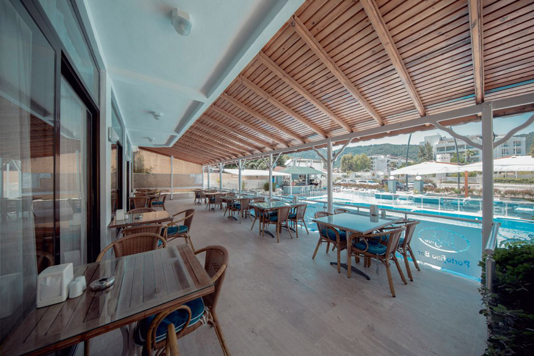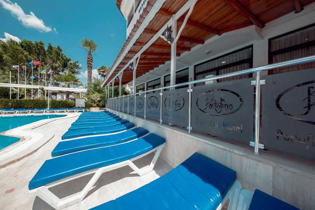 Otelde iç ve dış mekan yemek seçenekleri sunan 2 restoran mevcuttur. Kahvaltı, öğlen ve akşam yemeği açık büfe olarak hizmet verilmektedir. Havuz Bar ve Lobi alanda içecekler sunulmaktadır. 1991 yılı yaz sezonunda konuk ağırlamaya başlayan Hotel Portofino dünyanın ve Türkiye'nin önemli turizm merkezlerinden olan Marmaris'in eşsiz doğası ile ünlü İçmeler Beldesinde, denize ve plaja sadece 40 metre uzaklıktadır. 2025 de Renove edilmiştir.