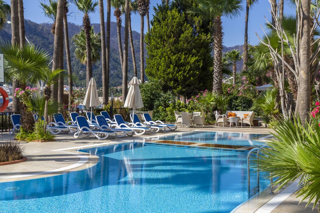 | Şehir Merkezine Uzaklık: | Marmaris 5 km, İçmeler 150 m | Plaj: | Mavi Bayraklı Özel Plaj |