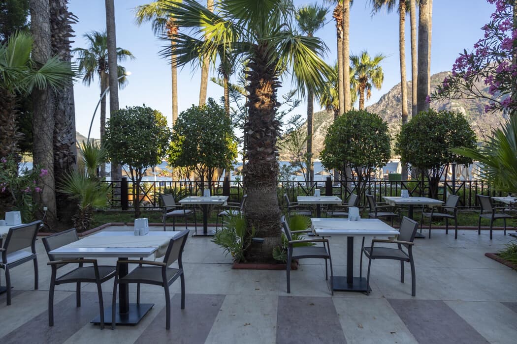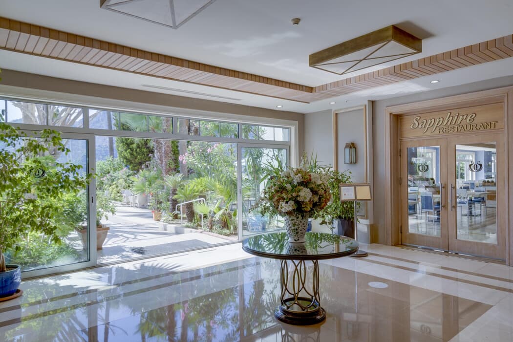 | Konaklama Açıklaması: | Sapphire Restoran 07:30 - 11:00 Kahvaltı (Açık büfe) 10:00 - 11:00 Geç Kahvaltı (Açık büfe) Hydas Snack 16:00 - 18:00 Çay Saati (Belirli menü) Bar 10:00 - 24:00 Kaunos Bar (Ücretli) Alkolsüz içecekler, lokal içkiler ve ithal içkiler ücretlidir. |