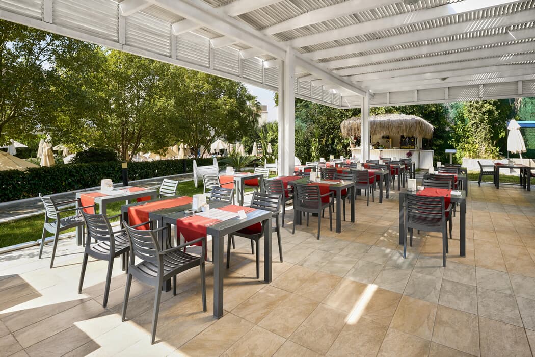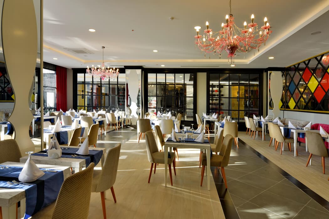 | Konaklama Açıklaması: | Ana Restoran 07:00 – 10:00 Kahvaltı 10:00 – 10:30 Geç Kahvaltı 12:30 – 14:00Öğle Yemeği 18:30 – 21:00 Akşam Yemeği Snack ve Aperatifler 23:00 – 00:00 Gece Yarısı Aperatifi 01:00 – 05:00 Mini Büfe 10:00 – 18:00 Dondurma (Lounge Bar) 12:00 – 15:30 Snack A’la Carte Restoran 11:00 – 15:30 Gözleme Evi (Sahilde) 15:30 – 17:00 Waffle Servisi 10:00 – 18:00 Pastane Her gün havuz ve sahilde çeşitli soğuk ve sıcak ikramlar (Meyve, dondurma, Türk tatlı çeşitleri vb.) Barlar 24 Saat Red Lounge Bar (ücretsiz yerli ve bazı seçilmiş alkollü/alkolsüz içecek servisi) 10:00 – 00:00 Lobi Bar 12:00 – 17:00 Snack Bar 10:00 – 18:00 Sahil Bar A'la Carte Restoranlar (Rezervasyonlu) 19:00 – 21:00 Asya Mutfağı 19:00 – 21:00 Osmanlı Mutfağı 19:00 – 21:00 Italyan Mutfağı (En az 1 gün önceden Rezervasyon, 3 A’ la Carte Restorandan birinde haftada 1 kez ücretsiz kullanım hakkı, en az 7 gece konaklamada) Tesisin belirlediği markalar dahilinde yerli alkollü ve alkolsüz içecekler ücretsizdir. Premium İthal tüm içecekler ve ithal özel şaraplar ve şampanyalar, taze sıkılmış meyve suları, vitamin bar ücretlidir. Mini Bar günlük değişim (Bira, Su, Soda, Soft İçecekler) |