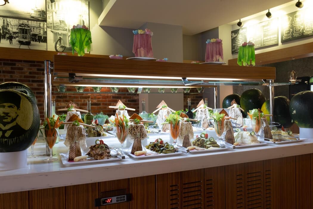 | Konaklama Açıklaması: | Ana Restoran 07:00-10:00 Sabah Kahvaltısı 12:30-14:00 Öğle Yemeği 19:00-21:00 Akşam Yemeği 23:00-01:00 Gece Çorbası 01:00-05:00 Gece Yemeği 10:00-10:30 Geç Kahvaltı Snack 11:00-16:30 Snack 11:00-19:00 Pastane 15:00-17:00 Sahilde Barbekü (Haftada 3 gün) 11:00-19:00 Dondurma (Pastanede) 16:00-18:00 Waffle & Dondurma (Havuz) 15:00-17:00 Sahilde Meyve Servisi Barlar 10:00-00:00 Lobi Bar 00:00-00:00Snack Bar 08:00-00:00 Garden Bar A'la Carte Restoran (Rezervasyonlu) 19:00-21:00 A'la Carte Restoran 7 gece ve üzeri konaklamalarda bir kereliğine ücretsizdir. Tesisin belirlediği markalar dahilinde yerli alkollü ve alkolsüz içecekler ücretsizdir. A la Carte restoran rezervasyonlu ve ücretlidir. 7 gece ve üzeri konaklamalarda 1 defa ücretsizdir. Mini bar giriş günü kola, fanta, su ve soda ile doldurulur. Günlük olarak su ile yenilenir. Seçili ithal içecekler, taze sıkılmış meyve suları ücretlidir. |