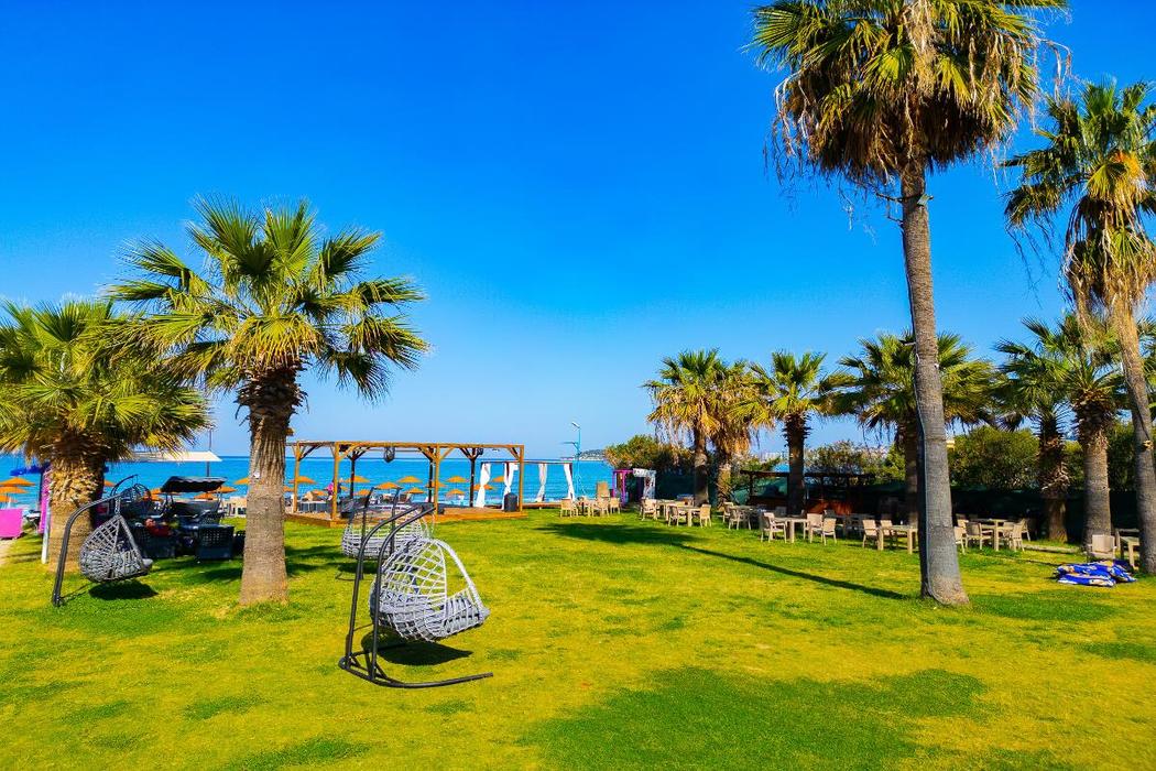 Konum olarak iyi denize sıfır otel. alan olarak da bayağı büyük. odalar buyuk geniş. biz üç tek kişilik yatak olan odada idik. gayet geniş idi. dolabı da yeterli idi. yerleşebildik geniş geniş. yeterli sayıda priz de vardı. bahçesi çok buyuk oturma alanları fazlaca var. odalardaki balkonda oturup bahçe ya da denizi izleyebilirsiniz. bizim kaldıpımız oda bahçeye bakıyordu akşamları oturup keyif yapabildik. çim alandaki şezlonglarda rahatça güneşlenebildik. şezlong krizi olmadı neyseki hiç. her daim şezlong bulabiliyorsunuz.
