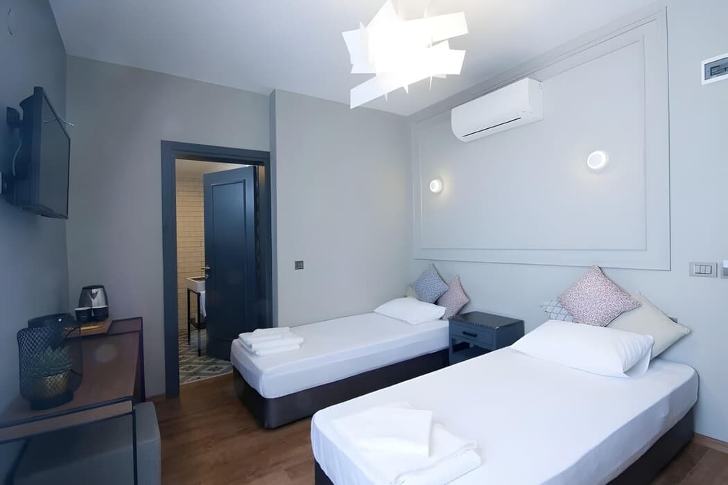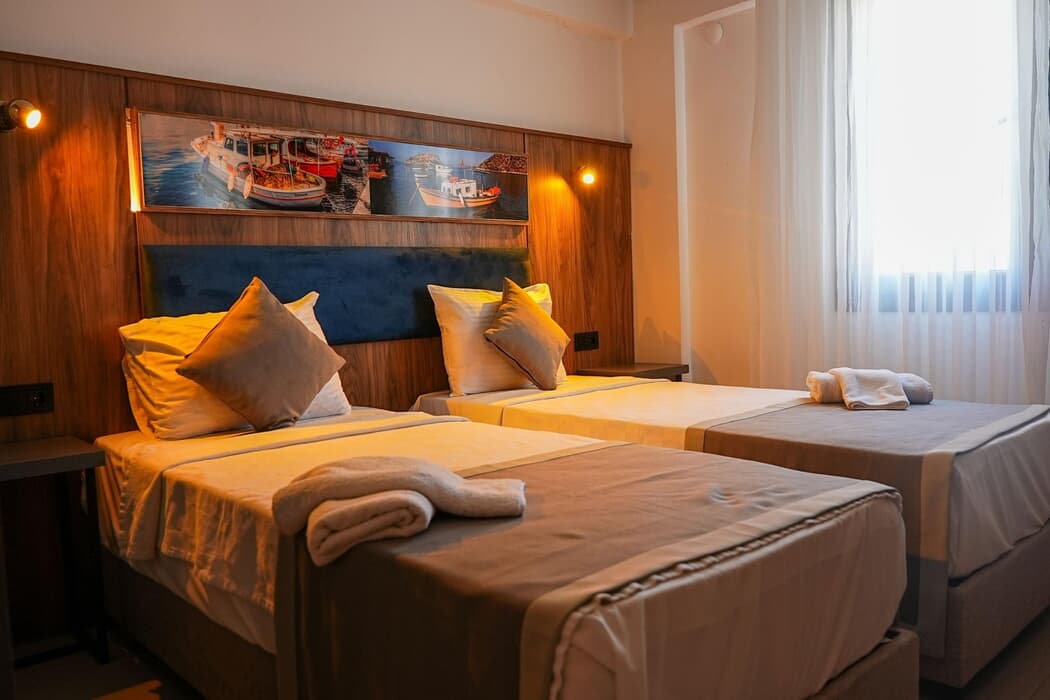 Açıklama: Kendine özel, sessiz bir tatil arayanlar için Promo Room, huzurlu bir sığınak gibidir.?Arka bahçe manzaralı, 20 m²’lik bu odalarda French veya Twin yatak seçeneği bulunur ve maksimum 2 kişi kapasitelidir.?Kliması, duş/WC banyosu ve modern tasarımıyla, minimal ama keyifli bir konfor sunar.?Balkonsuz yapısıyla, sessizliği ve sadeliği tercih eden misafirlerimiz için ideal bir seçenektir.?Günün yorgunluğunu atıp, sadece kendinize vakit ayırmak istiyorsanız, Promo Room tam size göre.