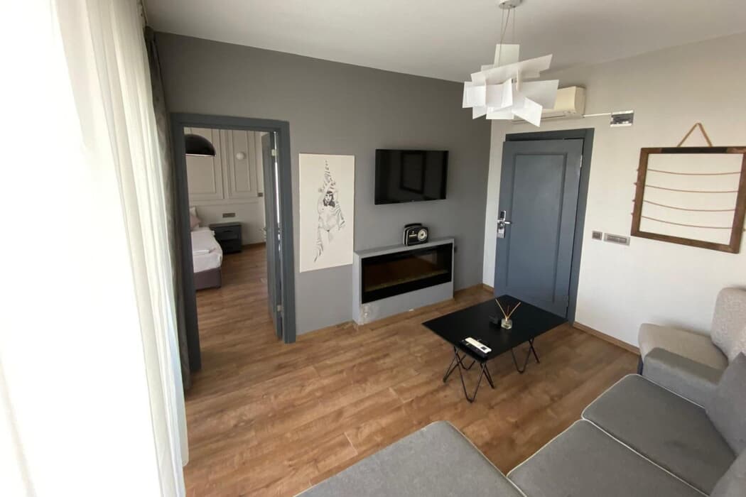 Açıklama: Ege’nin mavisiyle şehir ışıklarının buluştuğu yerde, Suite Room sizi özel bir deneyime davet ediyor.?45 m² genişliğinde, deniz ve şehir manzaralı, ferah bir yaşam alanı sunar.?1 yatak odası, 1 oturma odası, 2 balkon ve 2 klima ile hem konforu hem de ferahlığı bir arada yaşatır.?French yatak, modern banyo (duş/WC), TV ve özenli detaylar ile günün her anında rahatlık hissi verir.?Ailece konaklamak veya sevdiklerinizle özel bir tatil geçirmek için mükemmel bir seçenektir.?