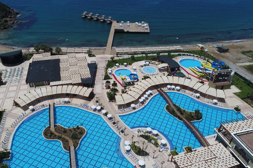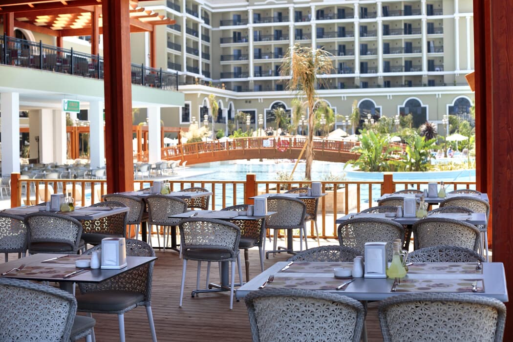 Tesis 6 adet ala carte restaurant ile misafirlere özel hizmet sunmaktadır. 2 adet açık yüzme havuzu ile keyifli bir tatil yaşayabilirsiniz. Denizde sadece yüzmeyecek, banana, deniz bisikleti, jetski, katamaran, sörf, yelkenli gibi su sporlarından da faydanalabiliyor olacaksınız.