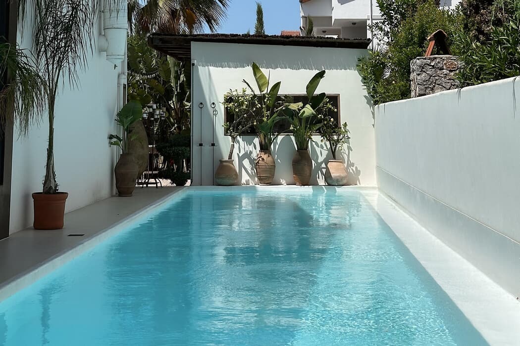 Açıklama: Yaklaşık 36 m² iç alan ve 12 m² botanik terasa sahip bu oda, queen size yatağı, yüksek ahşap tavanları ve antika detaylarıyla ferah ve şık bir atmosfer sunar. Çalışma masası, makyaj alanı ve açık dolap sistemi konforu artırır. Dağ manzaralı terasında iki şezlong bulunur. LED Smart TV, Netflix, minibar, Wi-Fi, geniş duş ve bornoz ile günlük kat hizmeti, eksiksiz bir konaklama deneyimi sağlar. ?