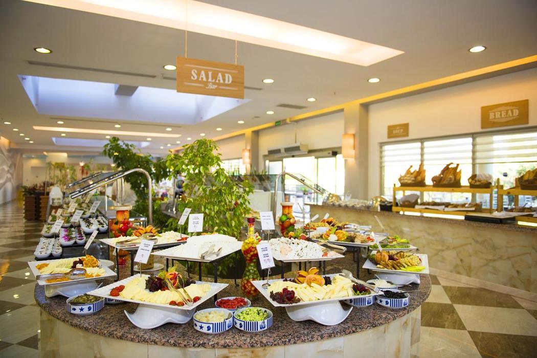 | Konaklama Açıklaması: | Ana Restoran 07:00 - 10:30 Kahvaltı 10:30 - 11:00 Geç Kahvaltı 18:00 - 21:00 Akşam Yemeği 23:00 - 00:00 Gece Yemeği 18:00 - 21:00 Çocuk Büfesi Aktivite Havuzu (Açık Büfe) 12:00 - 14:00 Açık Büfe Öğle Yemeği 11:30 - 16:30 Snack Servis 11:00 - 16:00 Gözleme A'la Carte Restoranlar (Ön Rezervasyonlu) 18:00 - 21:30 Uzakdoğu Spice 18:00 - 21:30 Italyan Prima Cucina 18:00 - 21:30 Taverna Türk 18:00 - 21:30 Green & Grill Barbekü (Ücretli) A'la carte restoranlar konaklama süresince 1 restoran sadece 1 kez ücretsizdir.(Green & Grill hariç.) Restoranlar haftanın 6 günü hizmet vermektedir. Barlar 24 Saat - The Bar (Yerli alkollü ve sıcak-soğuk alkolsüz içecekler) 10:00 - 00:00 Havuz Bar (Yerli alkollü ve sıcak-soğuk alkolsüz içecekler) 10:00 - 18:00 Chill Out Beach Bar (Yerli alkollü ve sıcak-soğuk alkolsüz içecekler) 20:00 - 23:00 Chill Out (Yerli alkollü ve sıcak-soğuk alkolsüz içecekler) 23:00 - 02:00 Disko / Chill Out Bar (23.00- 02.00 arası Disko veya Chill Out Bar’dan alabilir. Bu alanlar, saat 00.00 itibariyle ücretli olarak hizmet vermektedir.) 09:30 - 22:00 Thea's Coffee Shop & Juice Bar (Ücretli) 12:00 - 00:00 Sports Bar 16:30 - 17:30 Tea & Coffee Time (Alt Lobby) |
